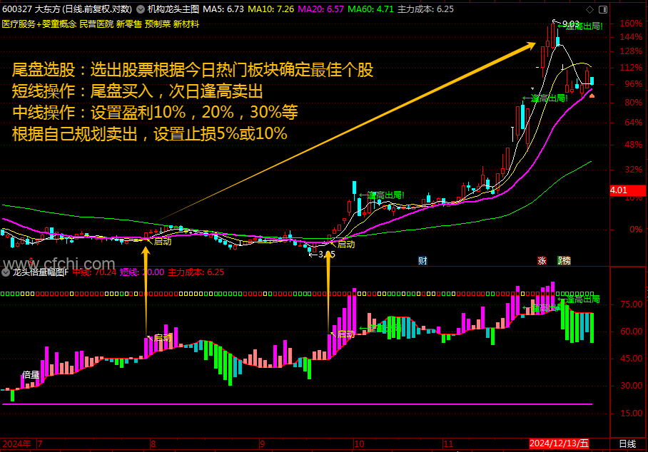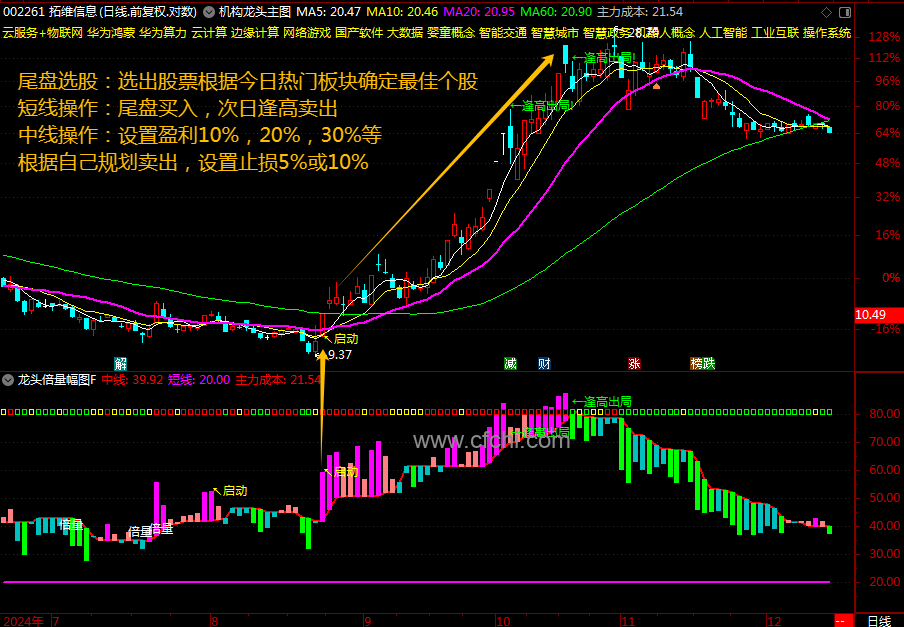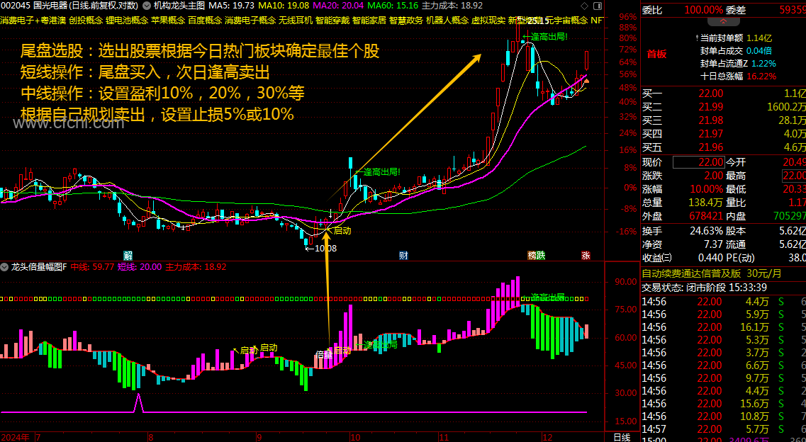 2,短线尾盘买入,选股指标选出票后,根据今日热门板块选出最佳个股,尾盘买入,次日逢高卖出。