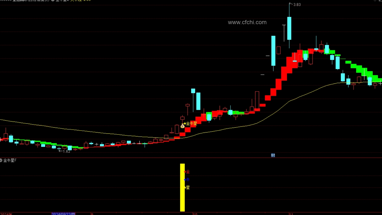 2、“大牛线”,以黄色线条展示,这条线不仅是市场牛熊转换的重要参考,也是趋势强度的重要标识。这为我们提供了一个中长期趋势的参考基准。
