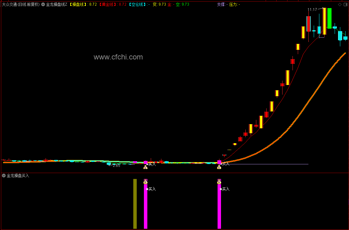 2、黄色K线(涨停突破性K线):黄色K线代表市场中的涨停或突破性行情,通常伴随着主力资金和游子资金的积极拉动。这种K线的出现,往往意味着市场有资金流入,股价有望进一步上涨。作用:黄色K线为大家提供了资金动向的直观线索,是判断市场热度、捕捉强势股的重要参考。大家可以密切关注这些K线的出现,结合其他分析手段,寻找潜在的投资机会。