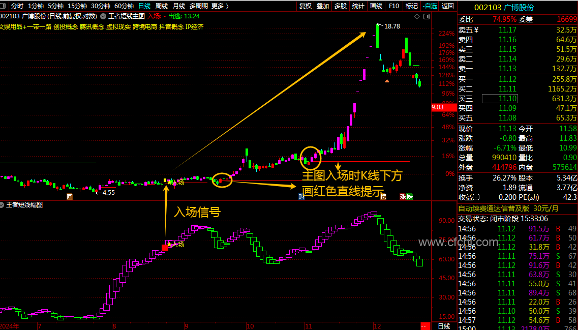 (通达信【王者短线】操作指标1主图1幅图2选股提前入场王者捉妖高抛低吸不含未来函数)