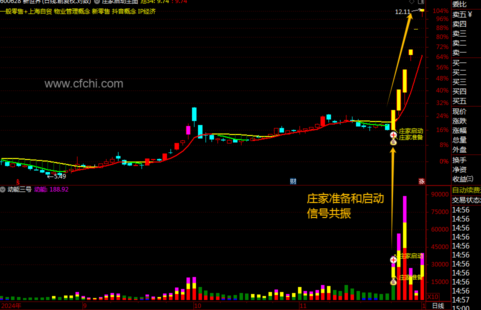 (通达信【庄家启动+动能三号】套装指标1主图1幅图2选股庄家启动配合动能三号抓龙头胜率高)