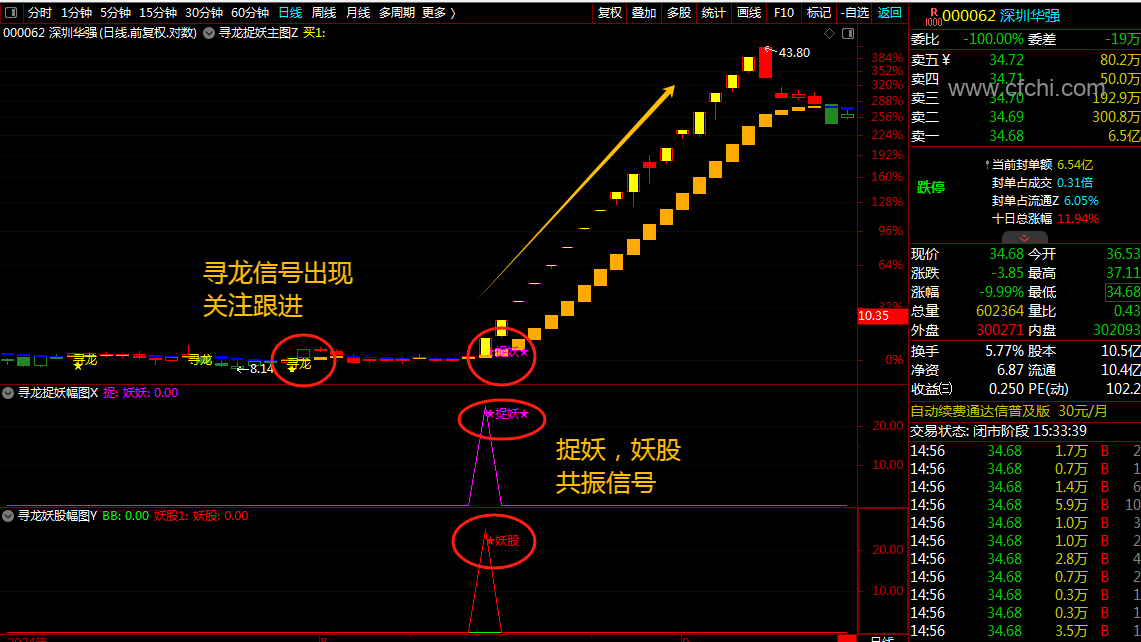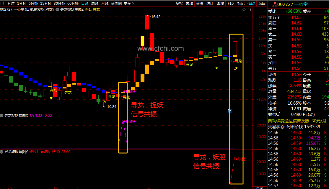 2,寻龙捉妖幅图:一是捉妖信号幅图,二是妖股信号幅图,明确的看出信号,加入关注。