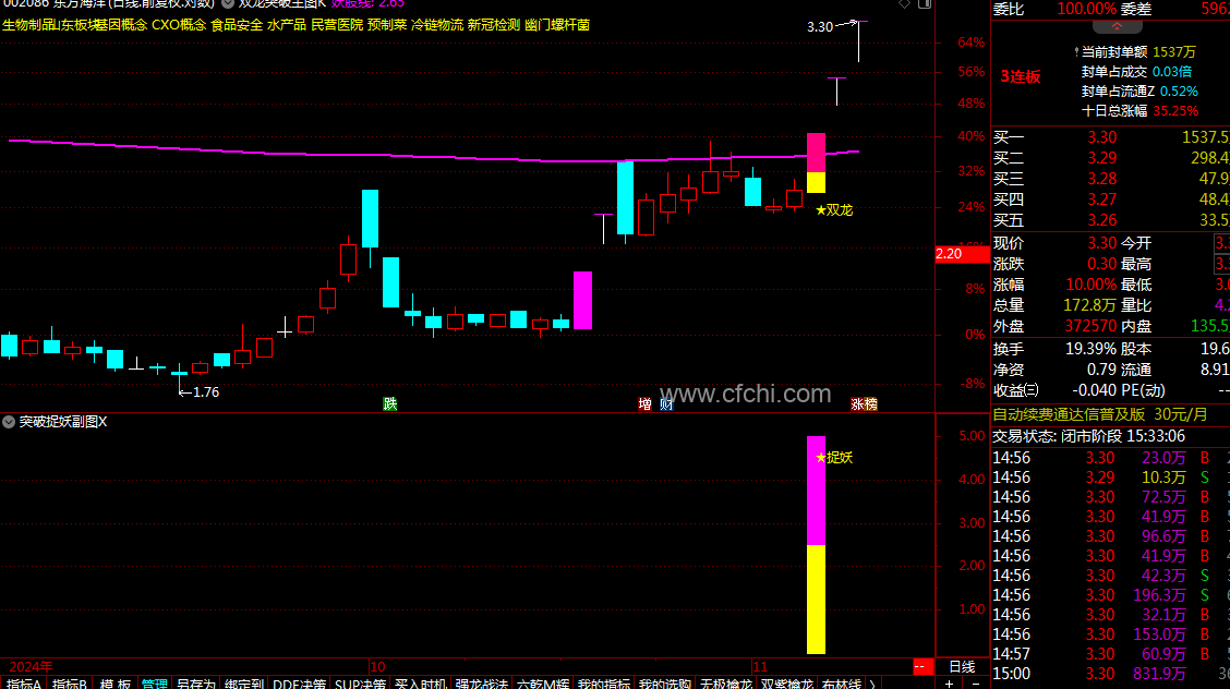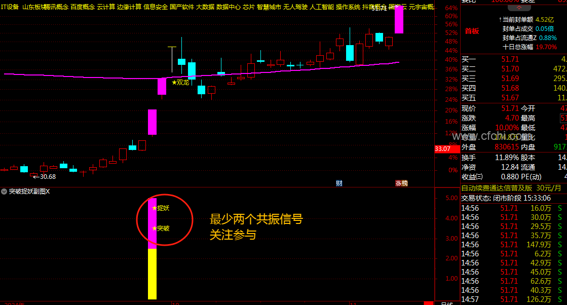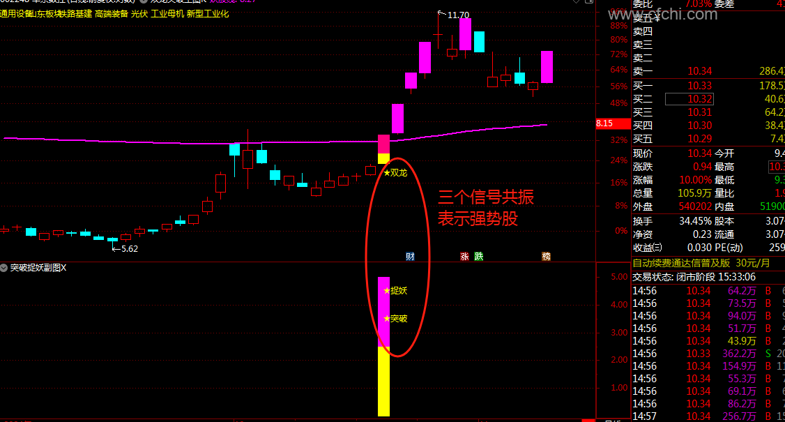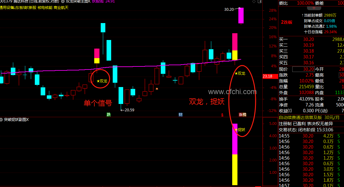 (通达信【双龙突破捉妖】套装指标1主图1幅图2选股抓主升浪突破捉妖共振信号效果更加)