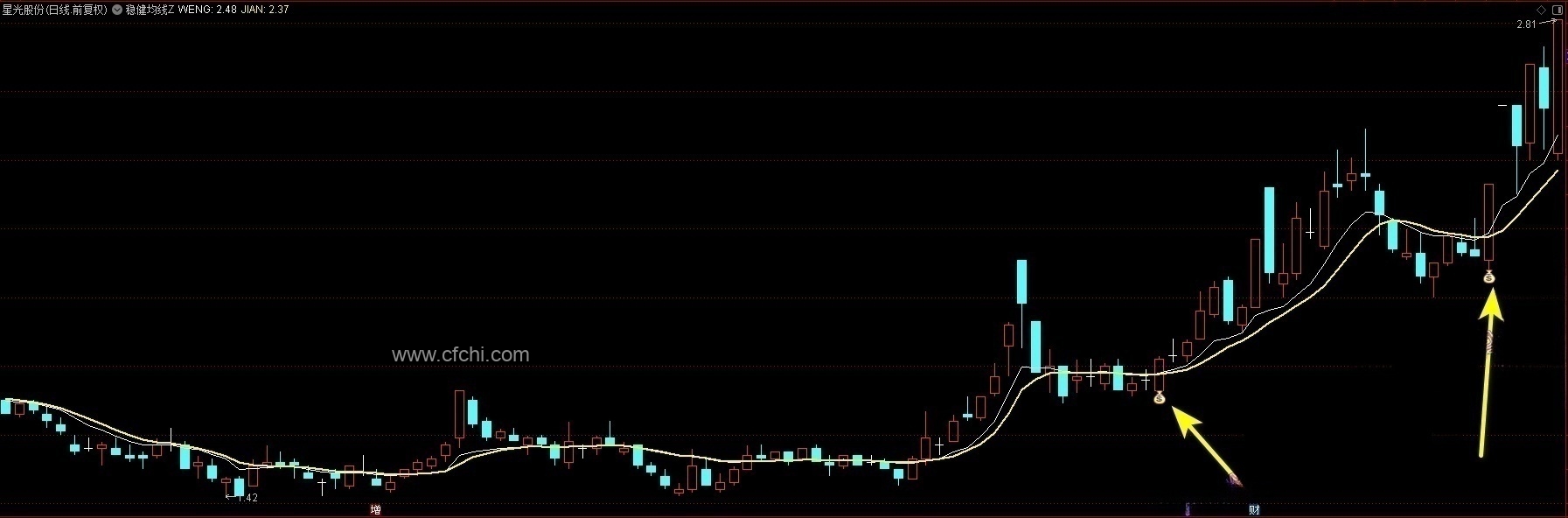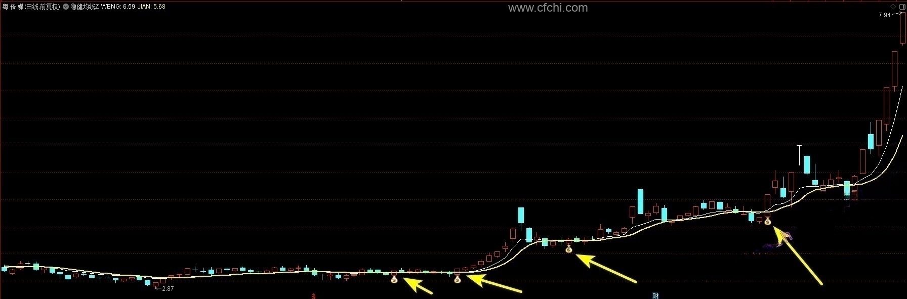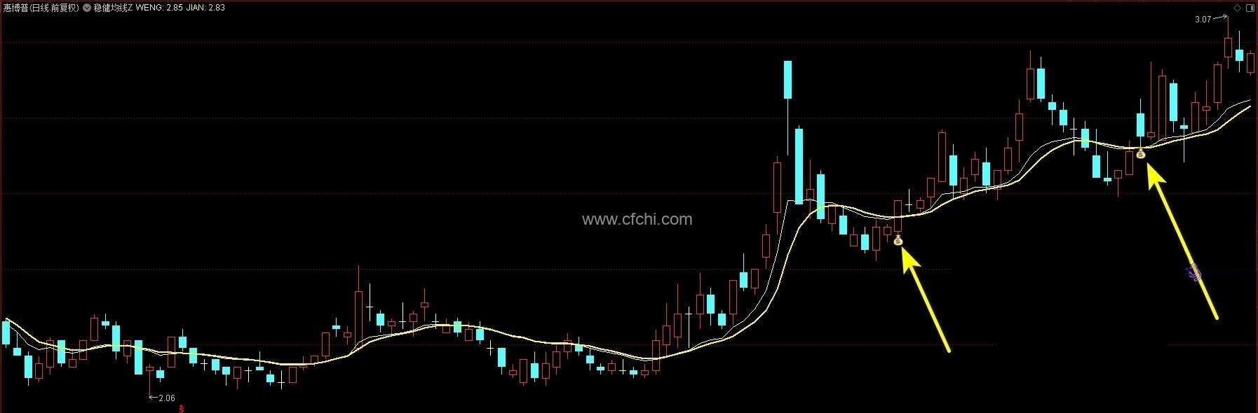 稳健均线在波段操作中表现同样很不错,很多低位小波段起涨信号都有。