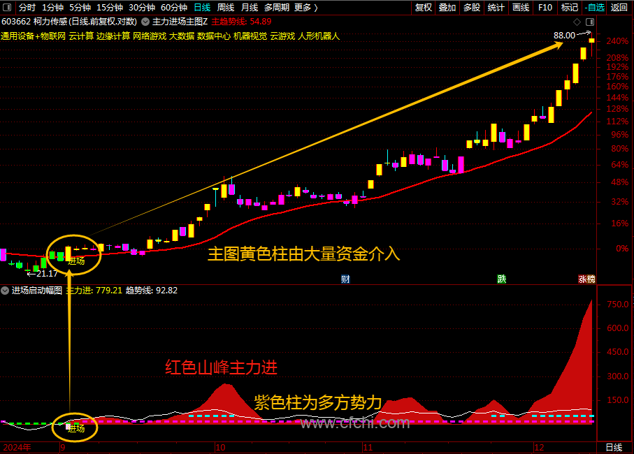(通达信【主力进场启动】套装指标1主图1幅图2选股主力进场捉龙头启动抓妖股胜率高不含未来函数)