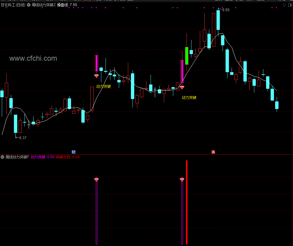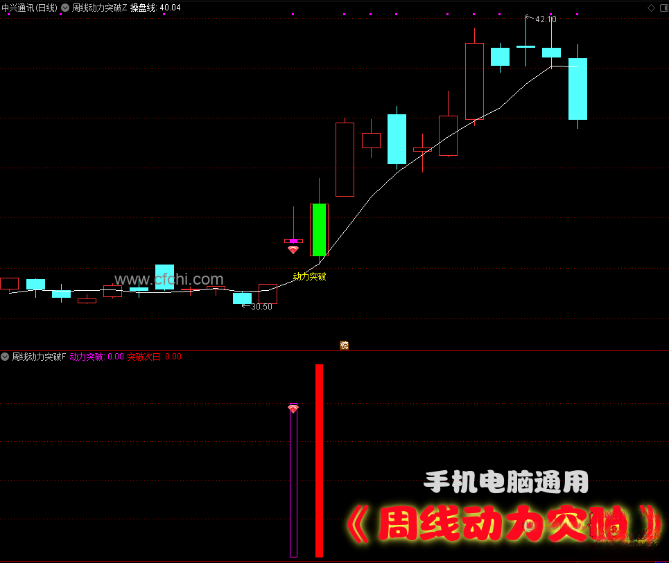 (通达信【周线动力突破】主副图/选股指标 捕捉个股在日线级别上突破周线高点手机电脑通用)