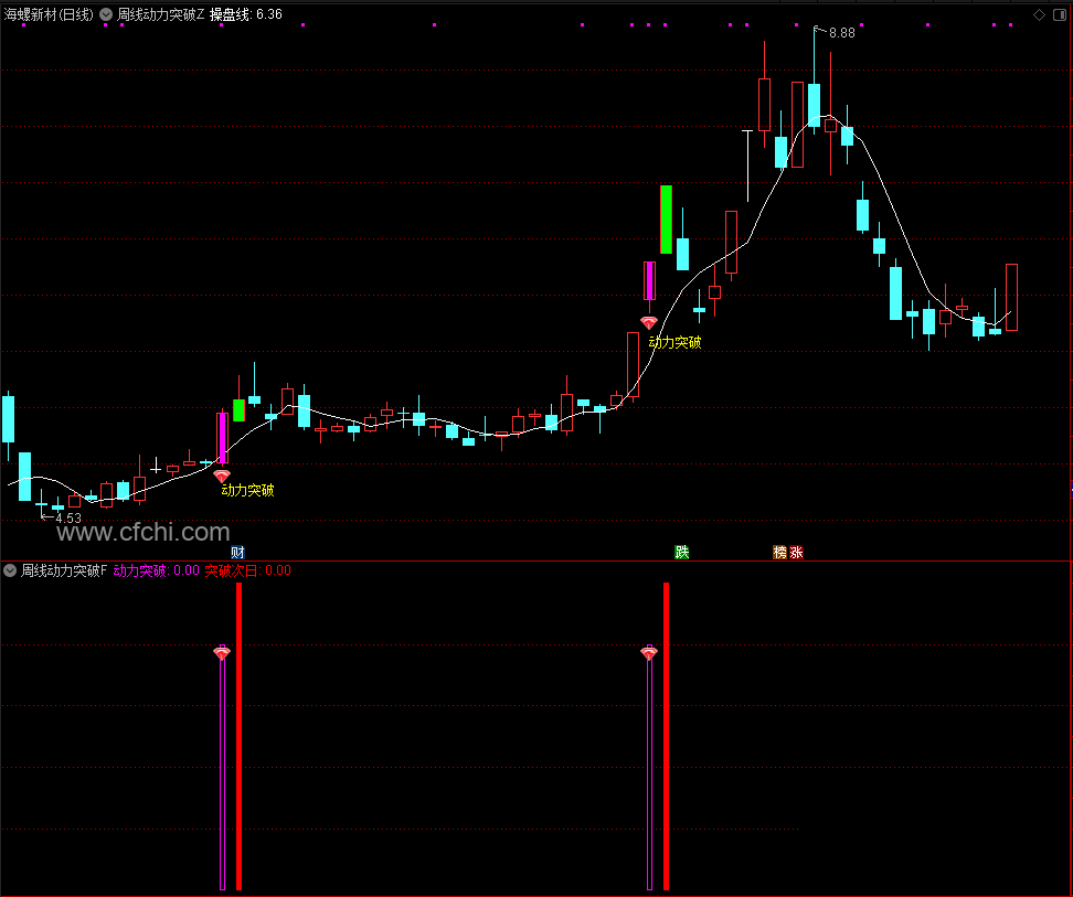 通达信【周线动力突破】主副图/选股指标 捕捉个股在日线级别上突破周线高点信号 手机电脑通用