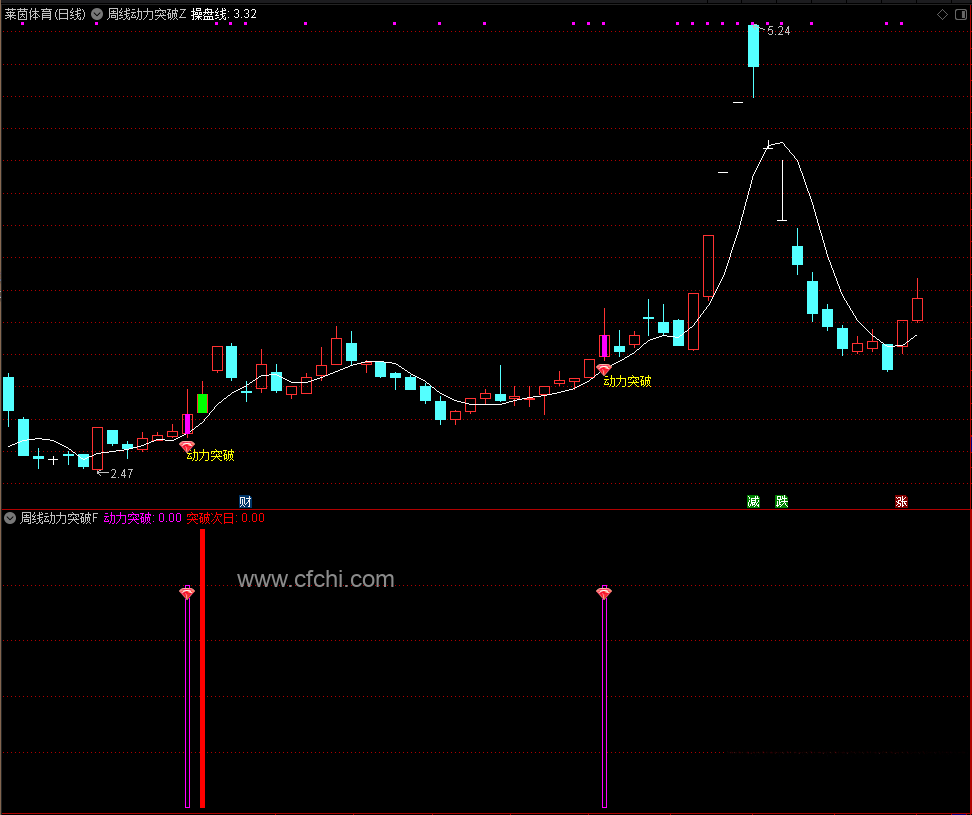 在周线突破信号后的次日,如果股价继续上涨,则视为额外的正面信号,主图显示绿色K线。