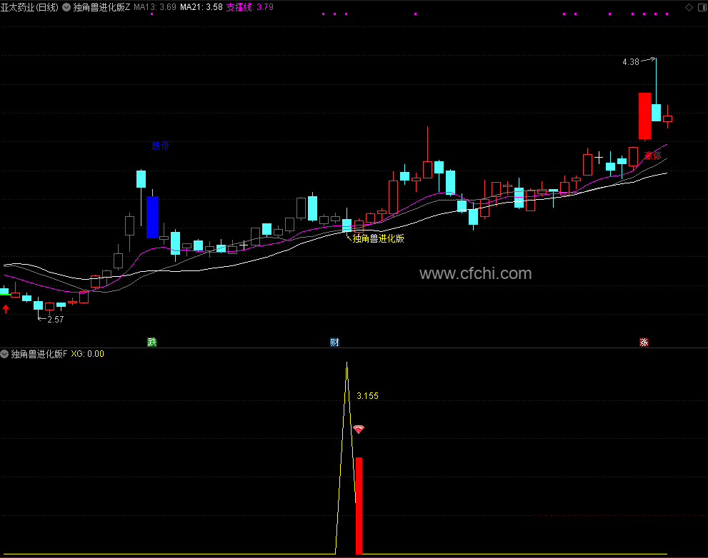 指标包括一主图,一附图,一选股指标,手机电脑通用信号供参考