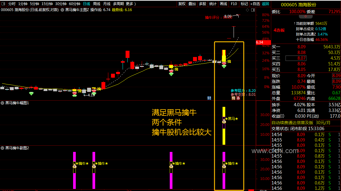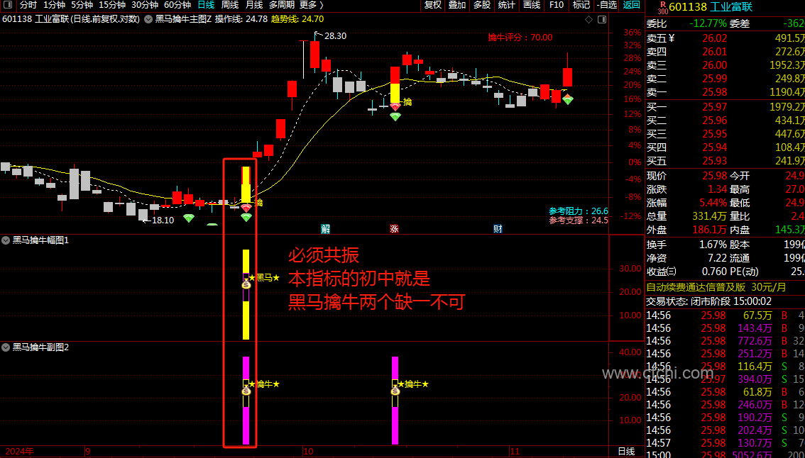 (通达信【黑马擒牛捉妖】指标1主图2幅图2选股黑马捉妖擒牛共振擒牛)