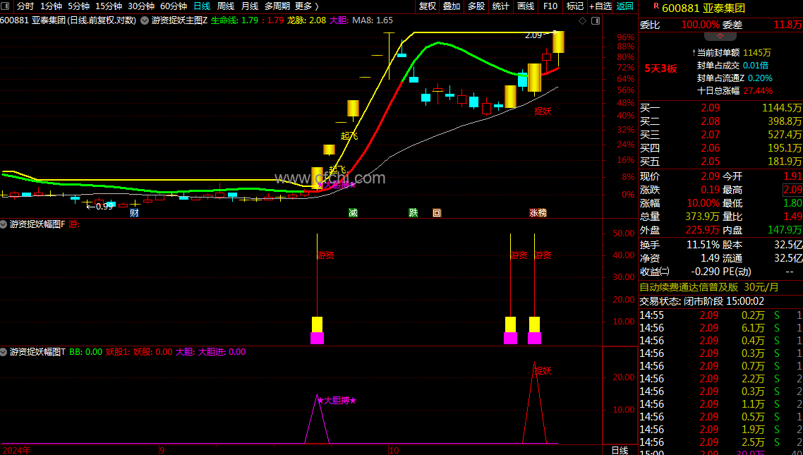 (通达信【游资捉妖】指标1主图2幅图3选股共振信号更加无未来函数)