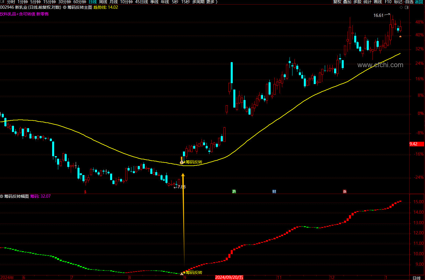 筹码反转指标结合了多种技术分析手段,包括均线、指数平滑移动平均线、以及独特的量价关系分析。