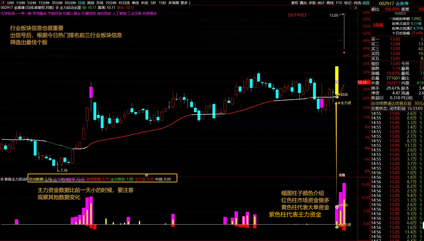 6、行业板块信息也很重要出信号后,根据今日排名前三的热门行业板块信息筛选出最佳个股。