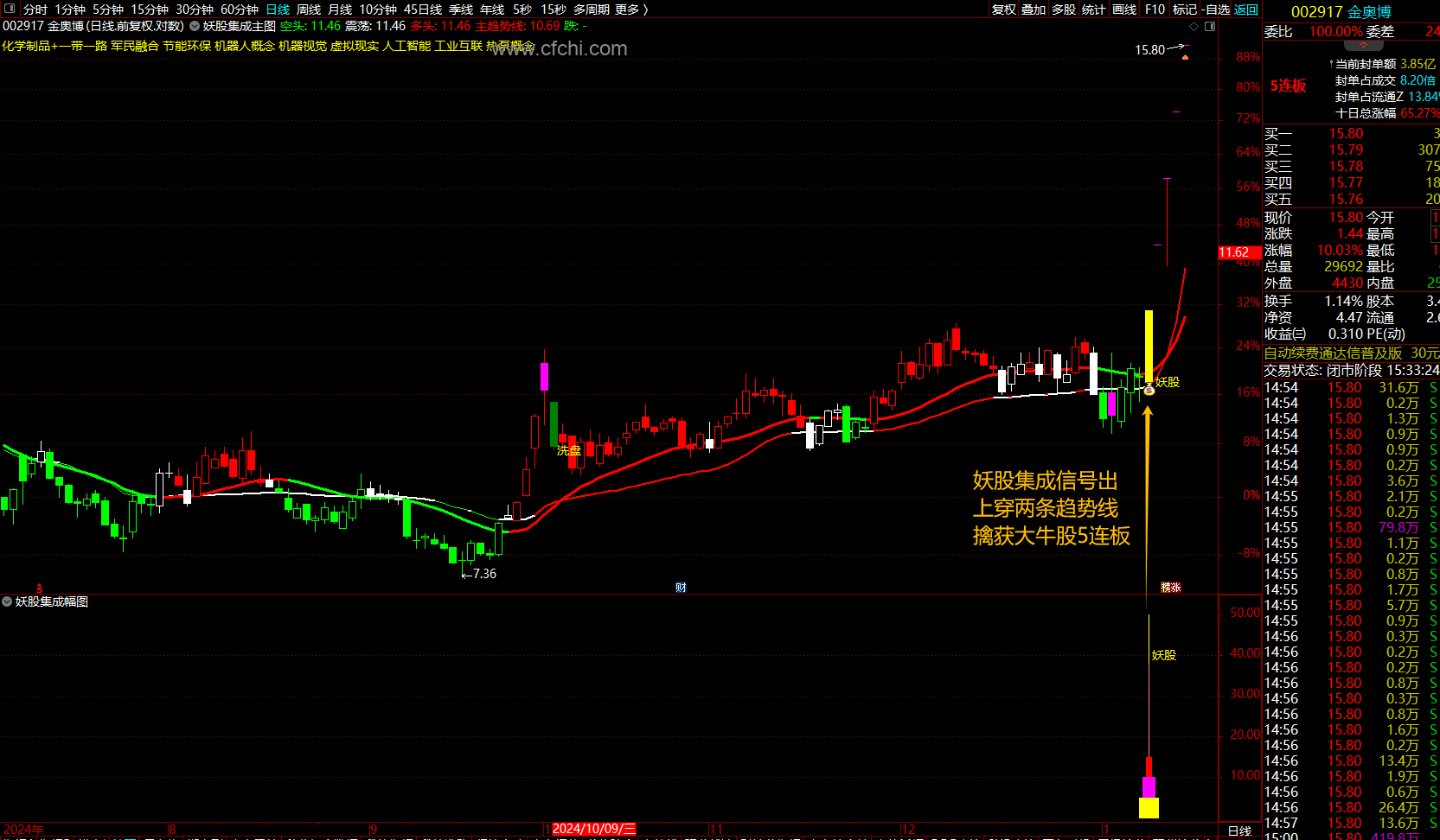 1、 妖股集成指标在捕捉那些具有强大上涨潜力和市场关注度的股票,通过精准的买卖时机把握,