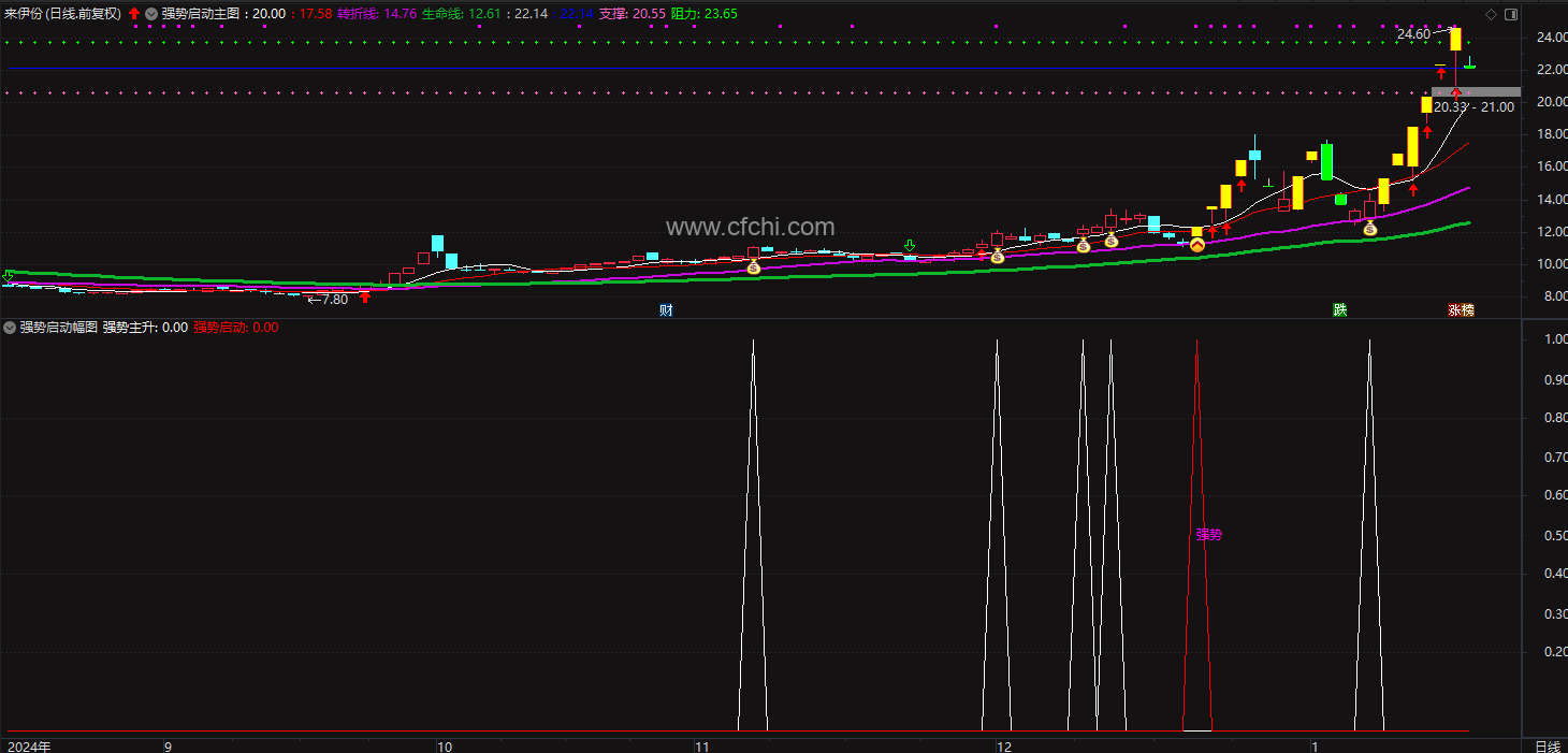 (通达信【强势启动】主/副图/选股指标 钱袋子信号都在主升启动前出现)