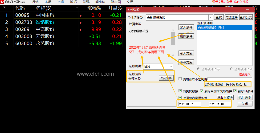 (通达信【启动成妖】指标1主图1幅图1选股1月1日至今选股5只其中擒获一只妖股无未来函数)