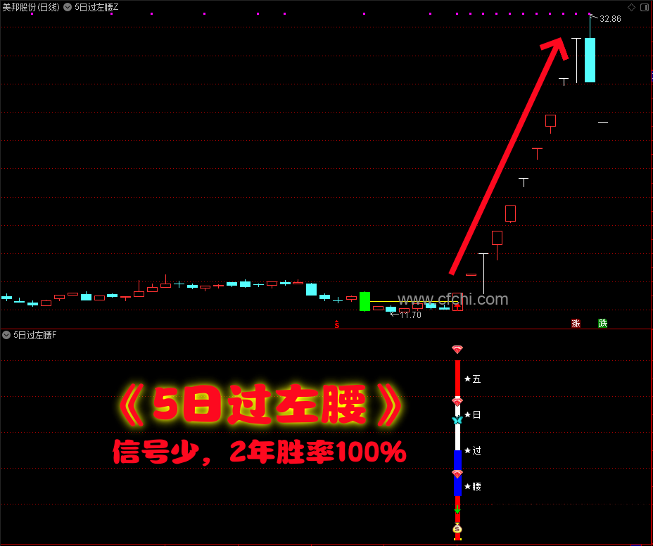 (通达信【5日过左腰】主图副图/选股指标 2年胜率高达100%无未来函数手机电脑通用)