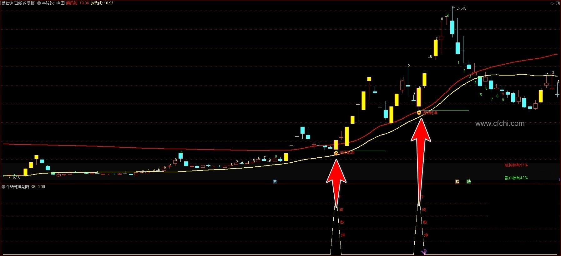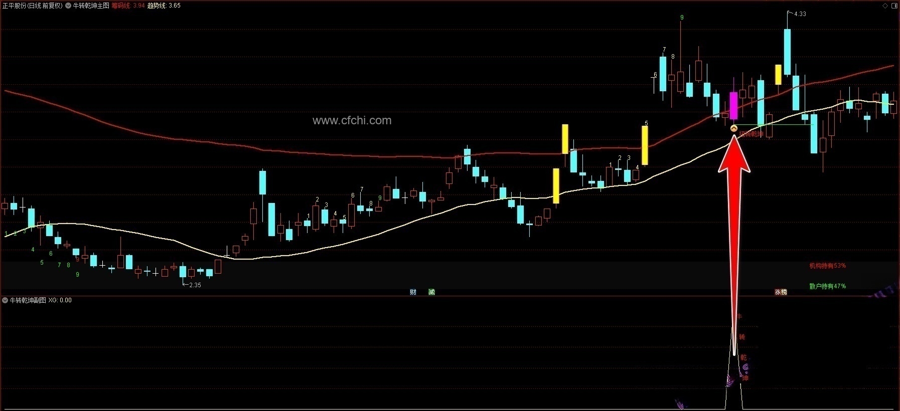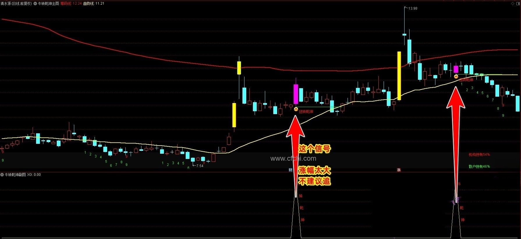 通达信牛转乾坤指标包含 1主图 1副图 1选股,上升趋势中的回调蓄能,信号不漂移,手机电脑通达信通用,信号供参考。