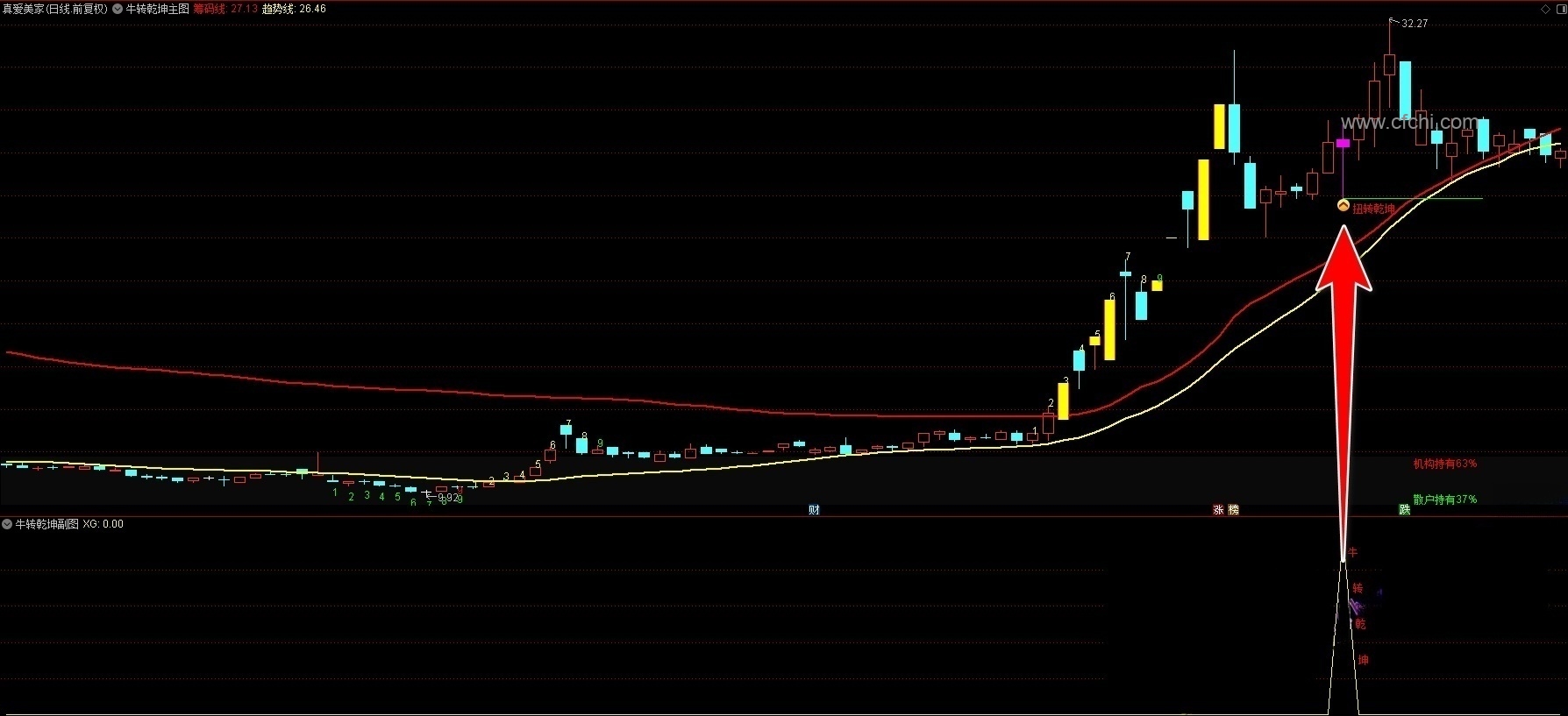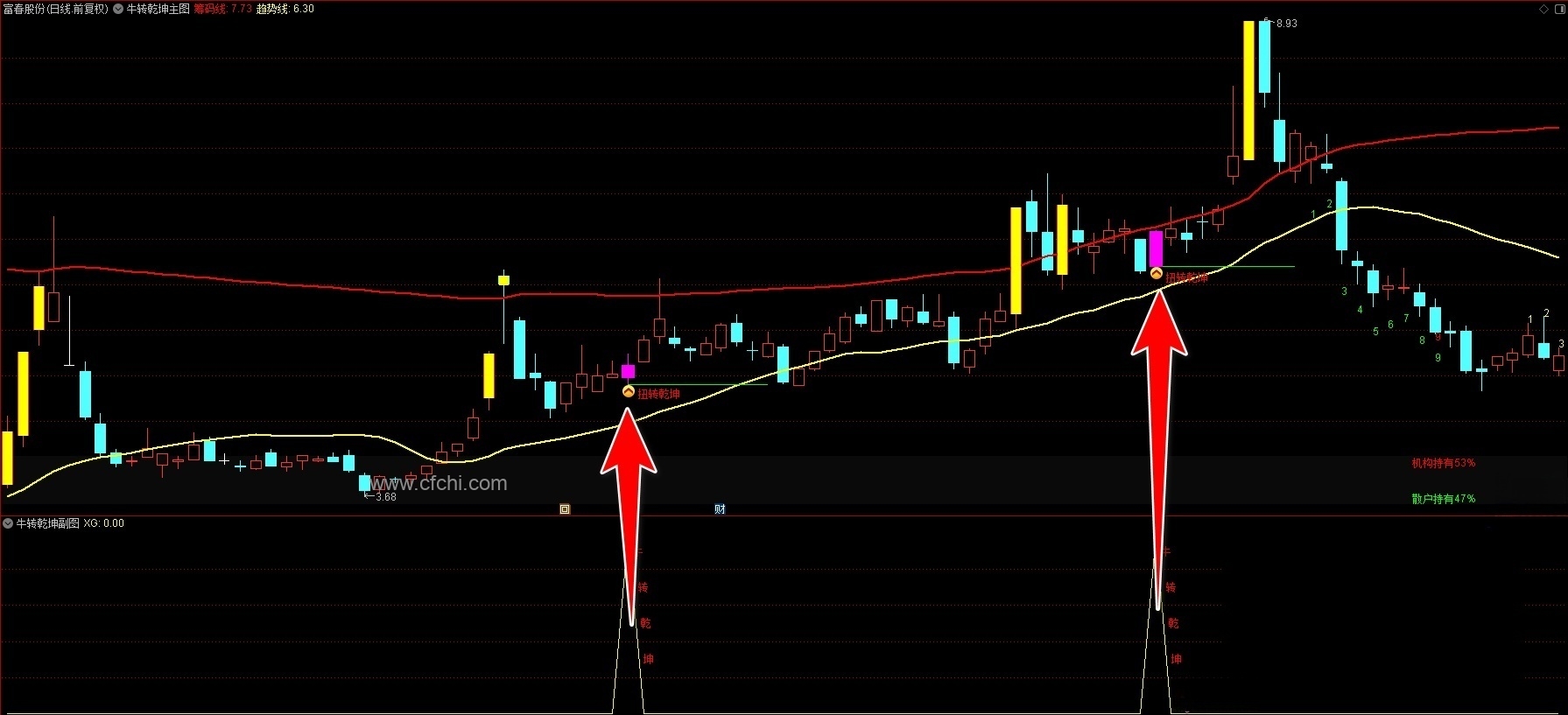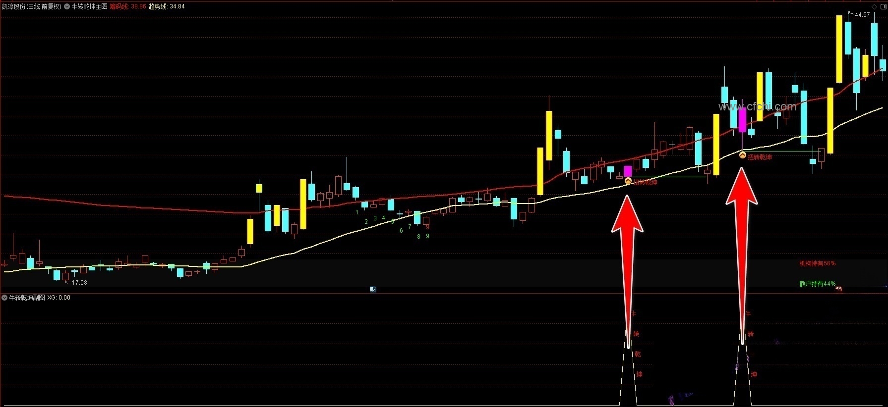 通达信牛转乾坤指标包含 1主图 1副图 1选股,上升趋势中的回调蓄能,信号不漂移,手机电脑通达信通用,信号供参考。
