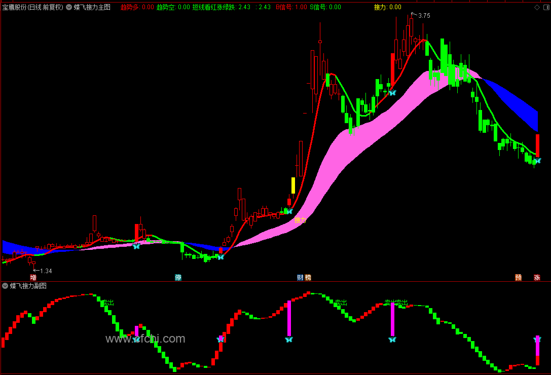 (【蝶飞接力】通达信蝶飞接力主副图选股指标,源码)