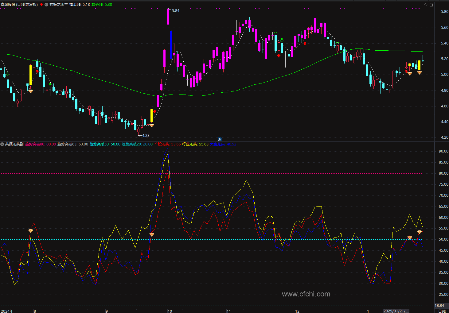 (通达信【共振龙头】主副图/选股指标 个股行业题材 共振信)