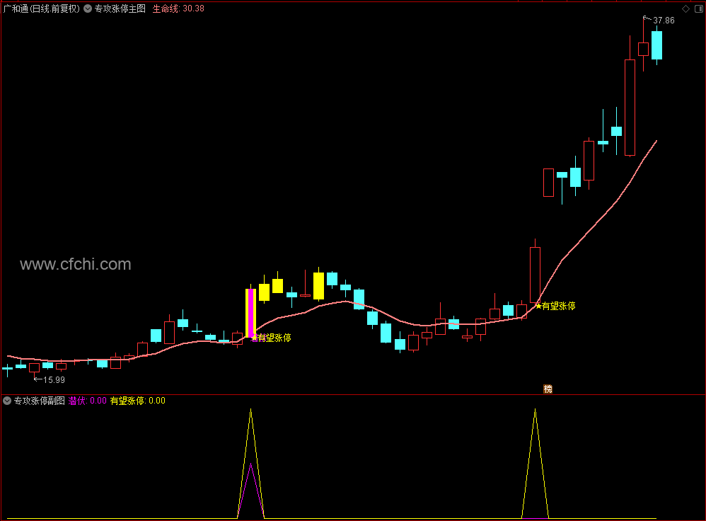 3、选股指标“有望涨停”可设为预警,盘中可抓涨停股!