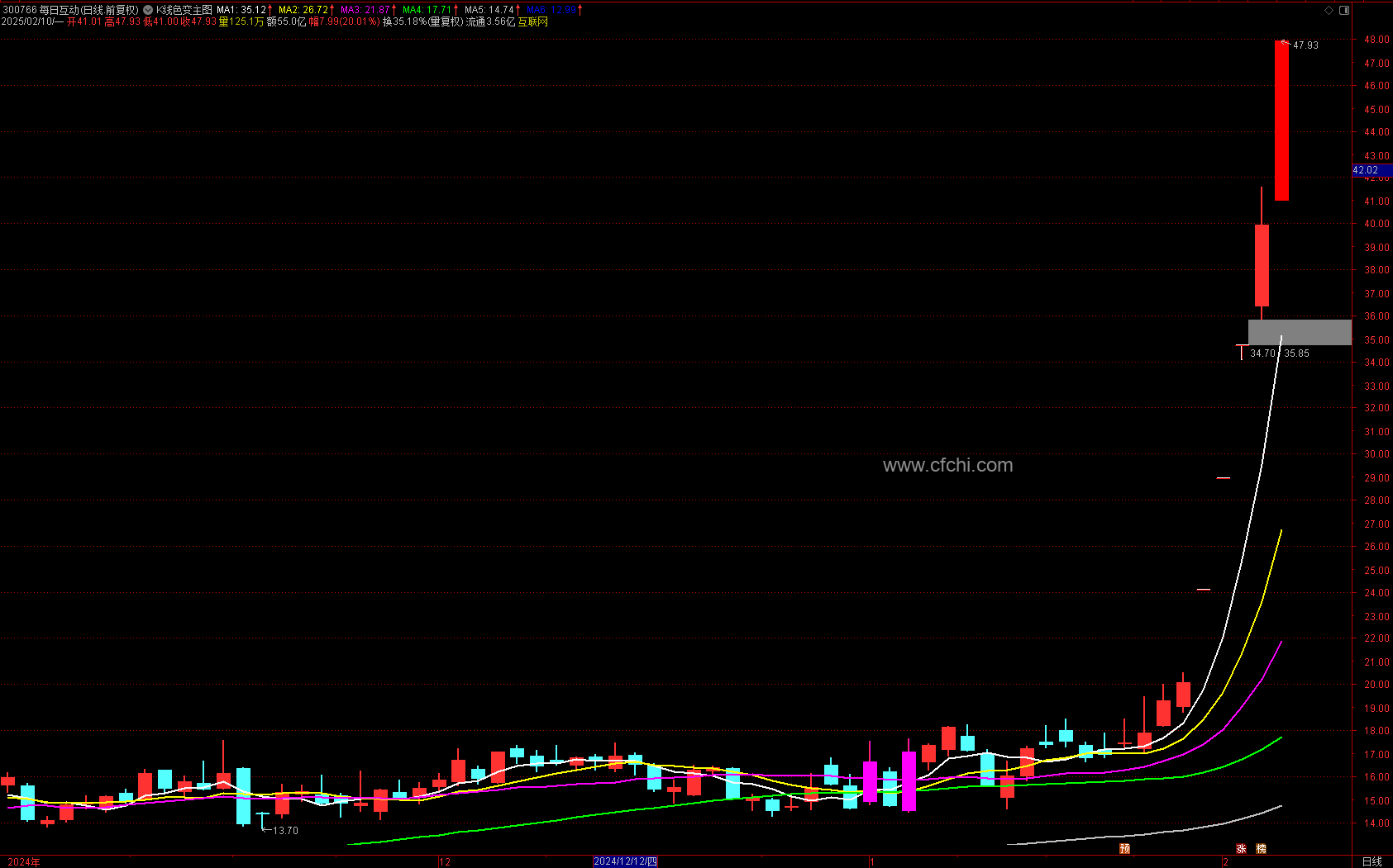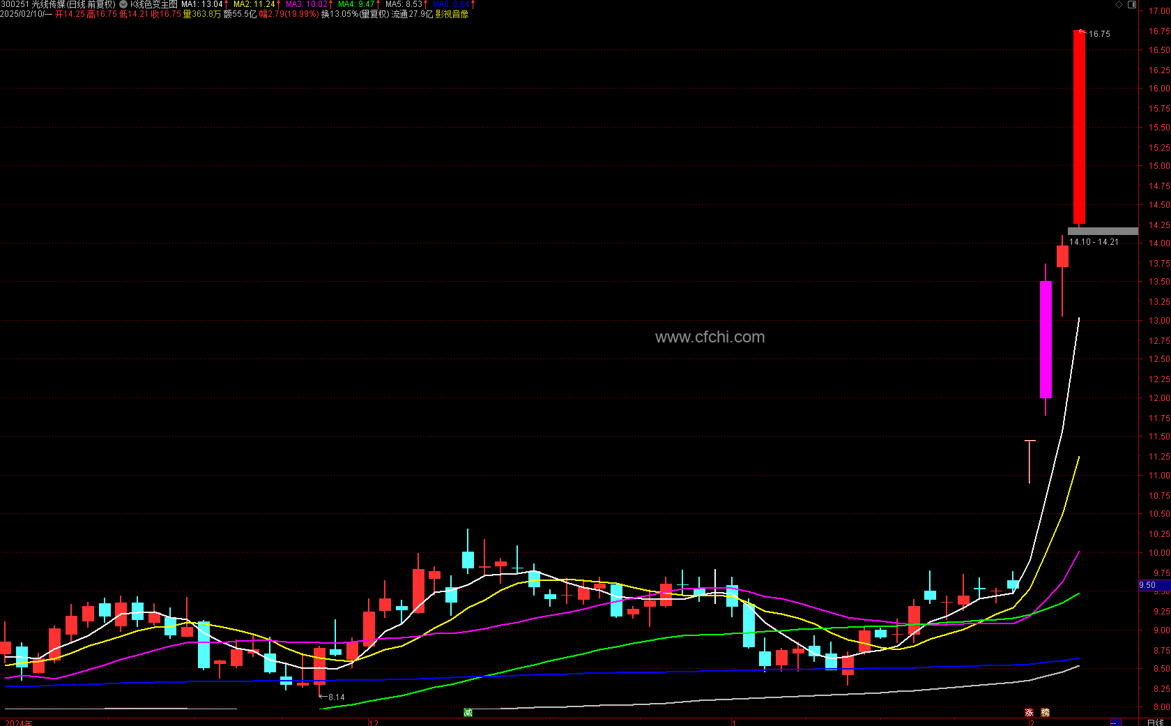 (通达信K线色变主图,涨停红,跌停绿,未遂的变淡)