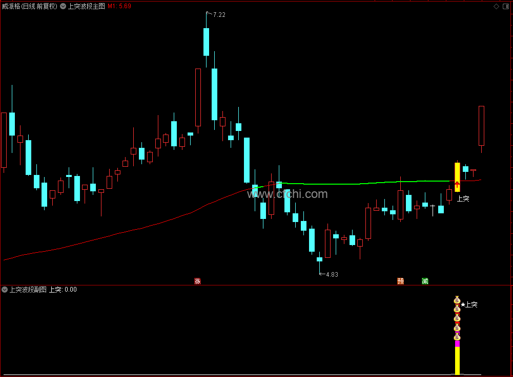 (【上突波段】通达信上突波段主副图选股指标,源码)