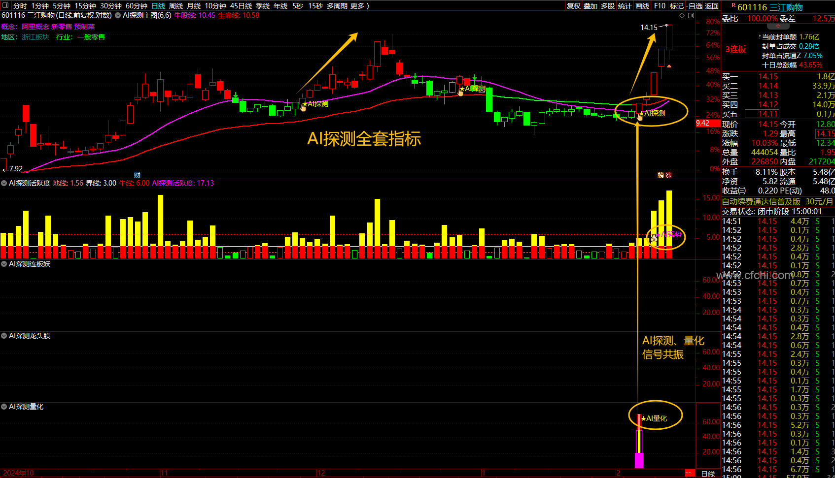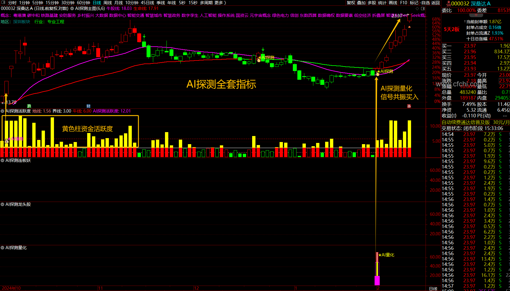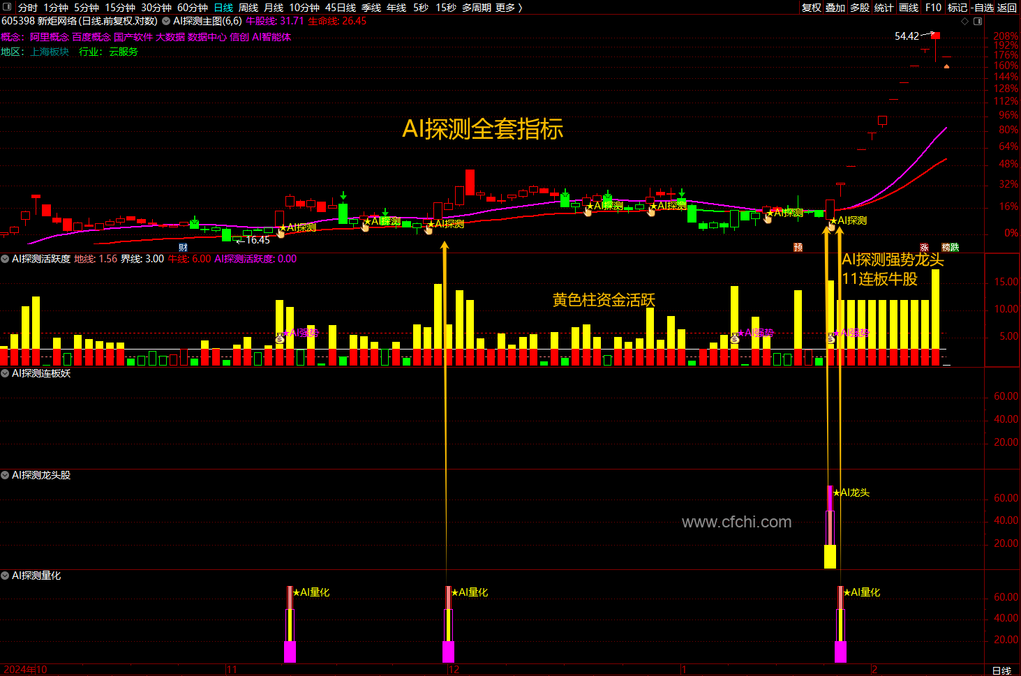 (【AI探测全套】指标/1主图4幅图5选股/AI探测资金活跃度/量化势/首板/龙头/无未来函数)