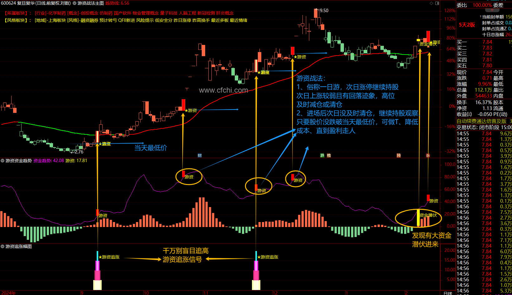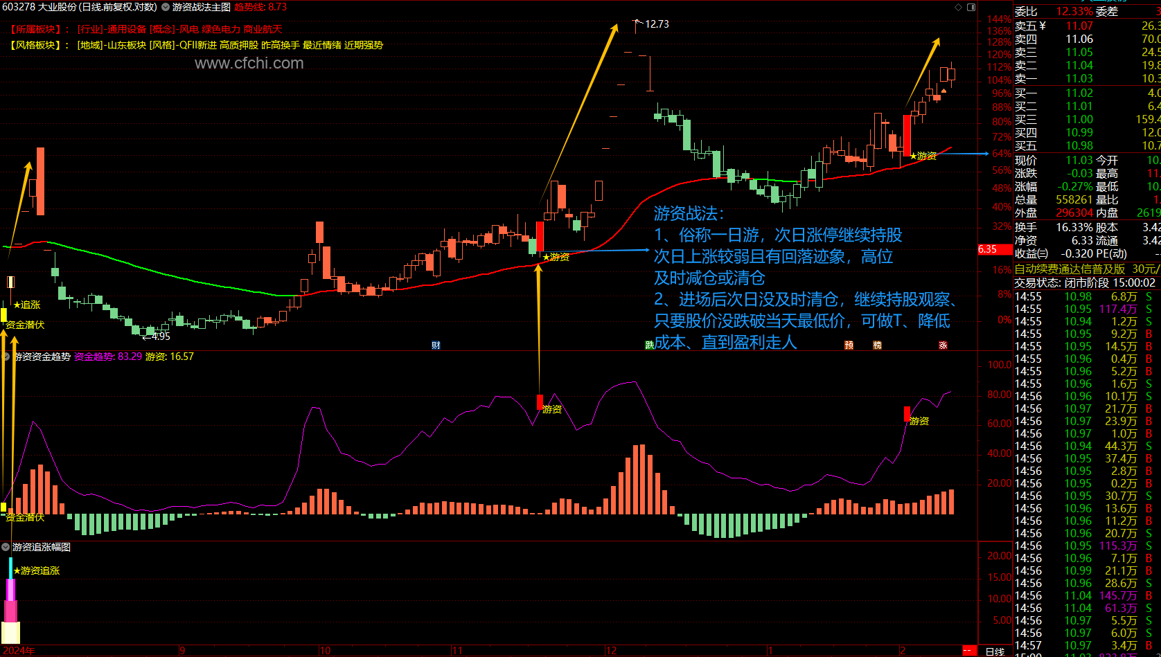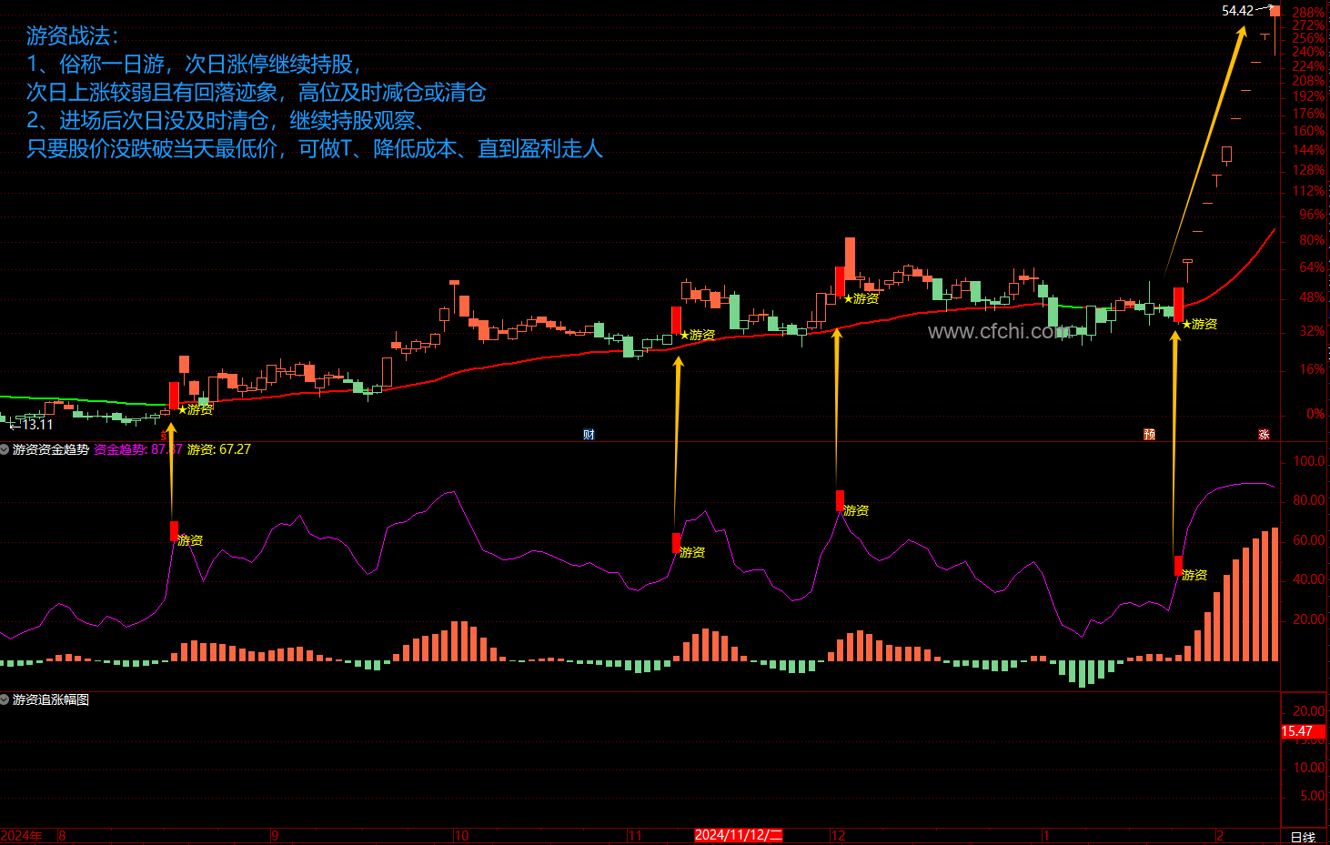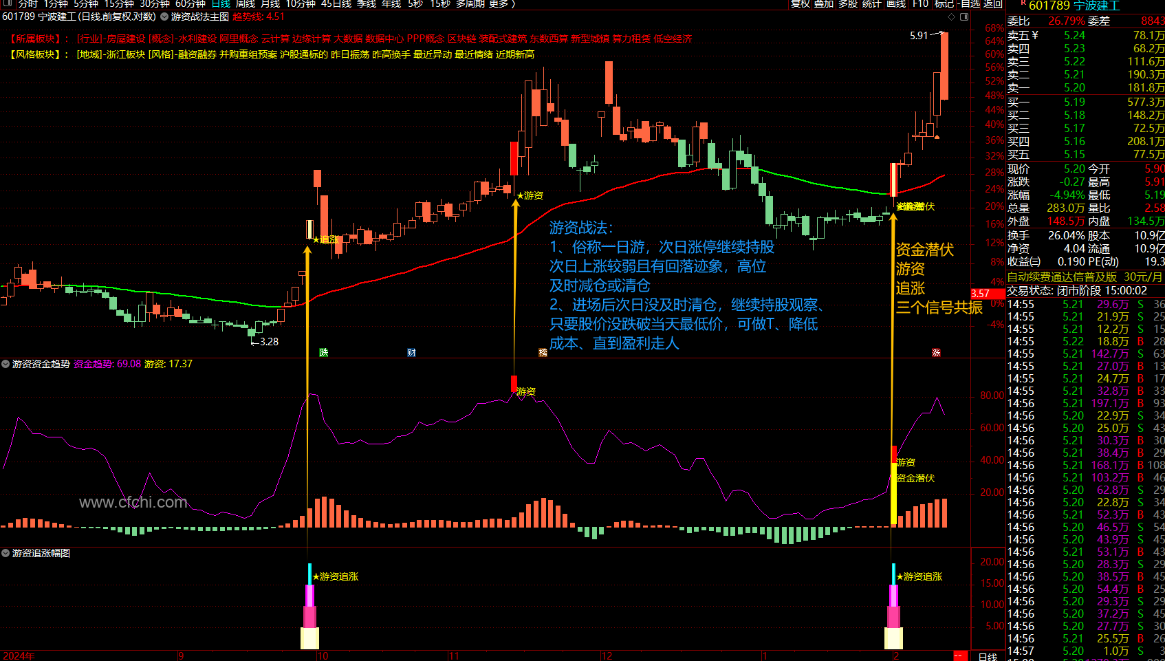(通达信【游资战法】指标1主图2幅图3选股、游资战法一日游、大资金潜伏、游资追击)