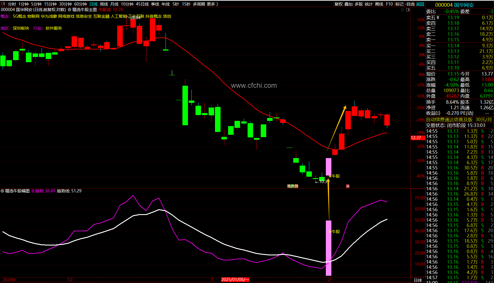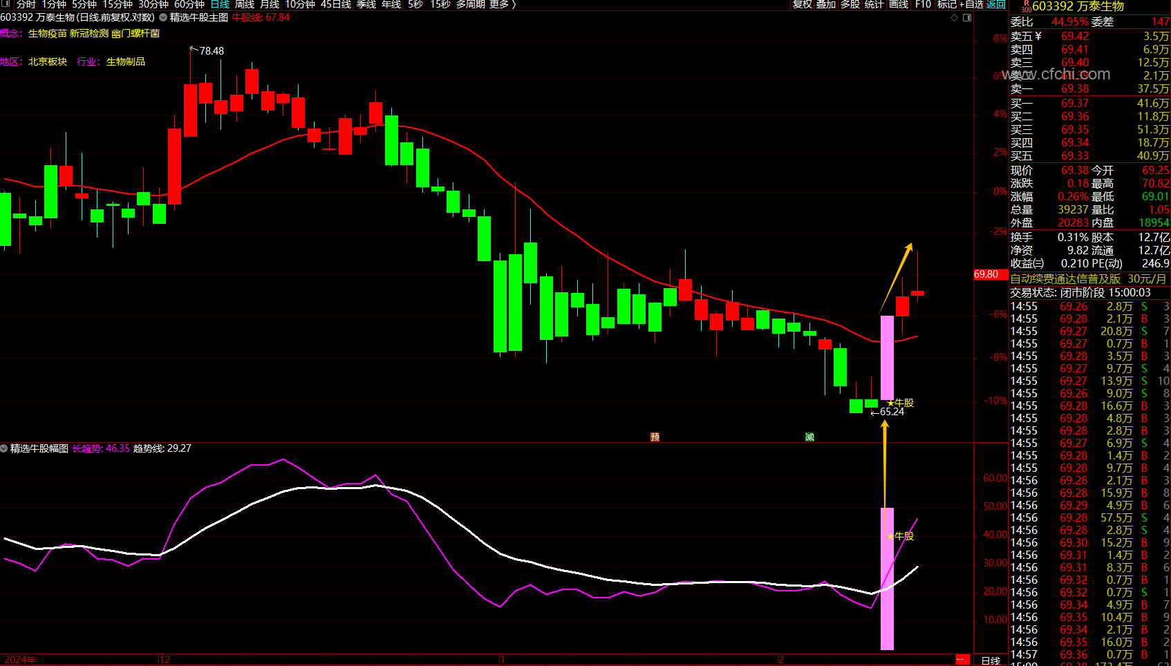 信号位置不高可以尾盘选股,尾盘做选择,入场后不破近期低点坚决持有,破低点立即止损出局。