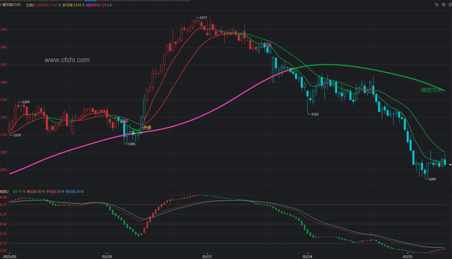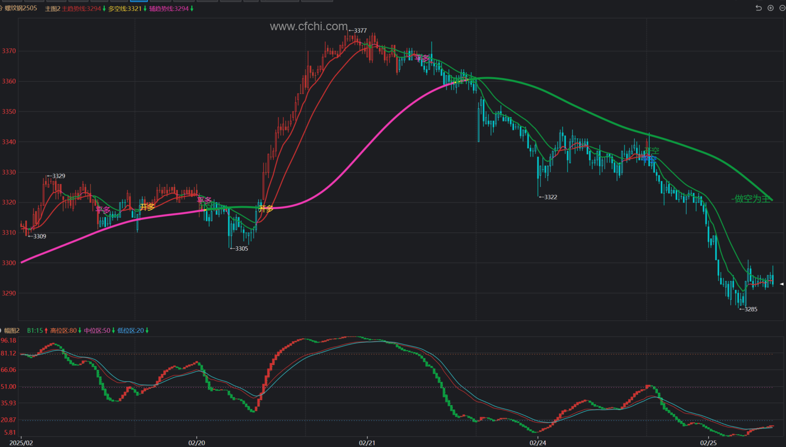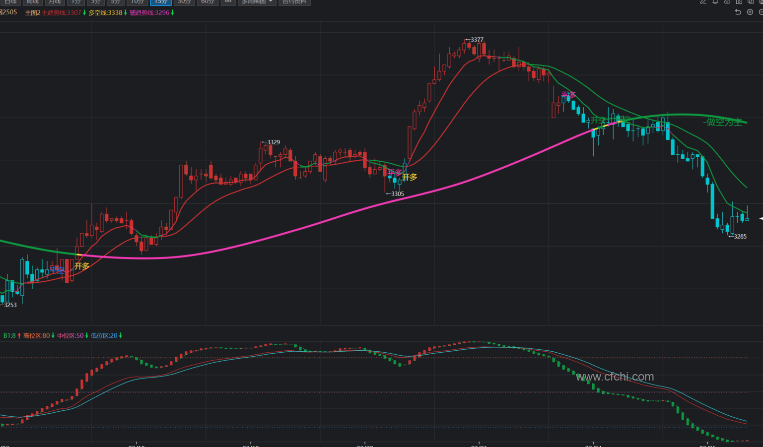 (同花顺期货通指标公式-多空变色趋势线|波段短线交易策略系统)