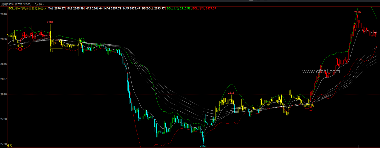 文华财经期货主图指标-boll多空均线突破交易|变色震荡K线。