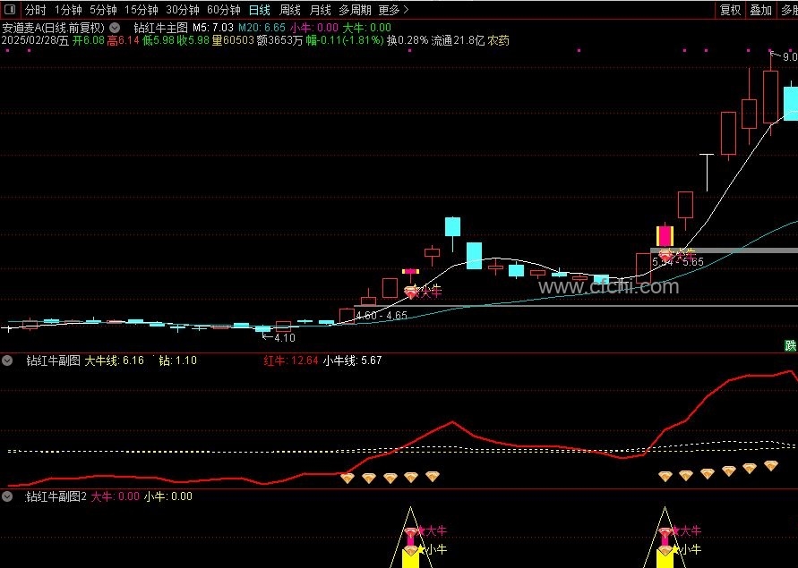 (【钻石红牛】通达信钻石红牛主副图选股指标,源码无未来 手机电脑通用)