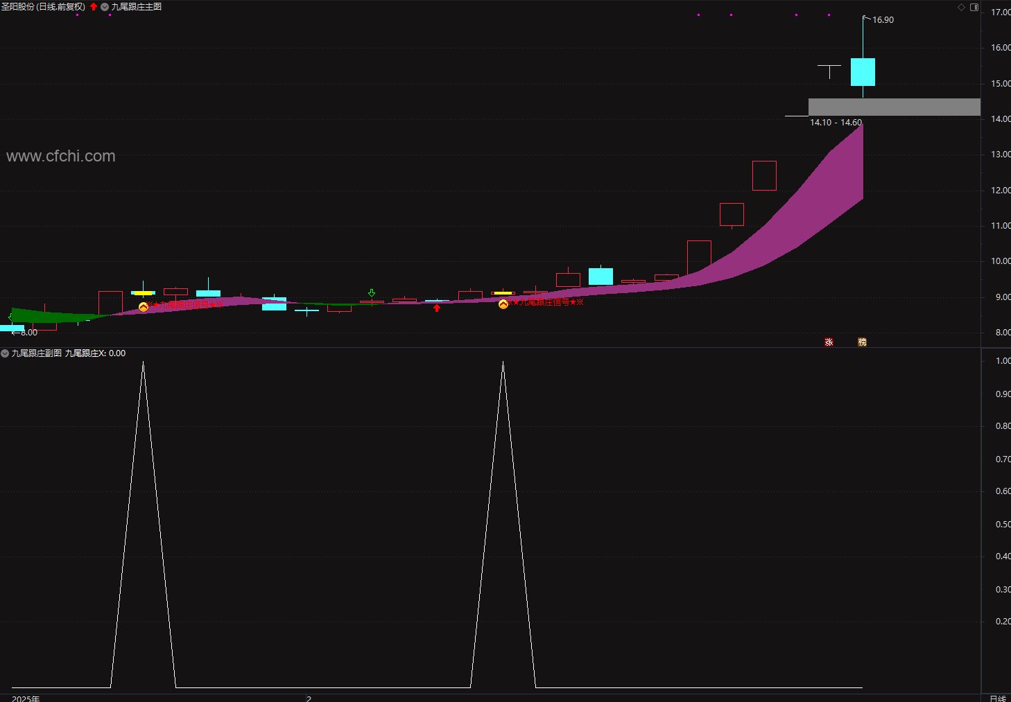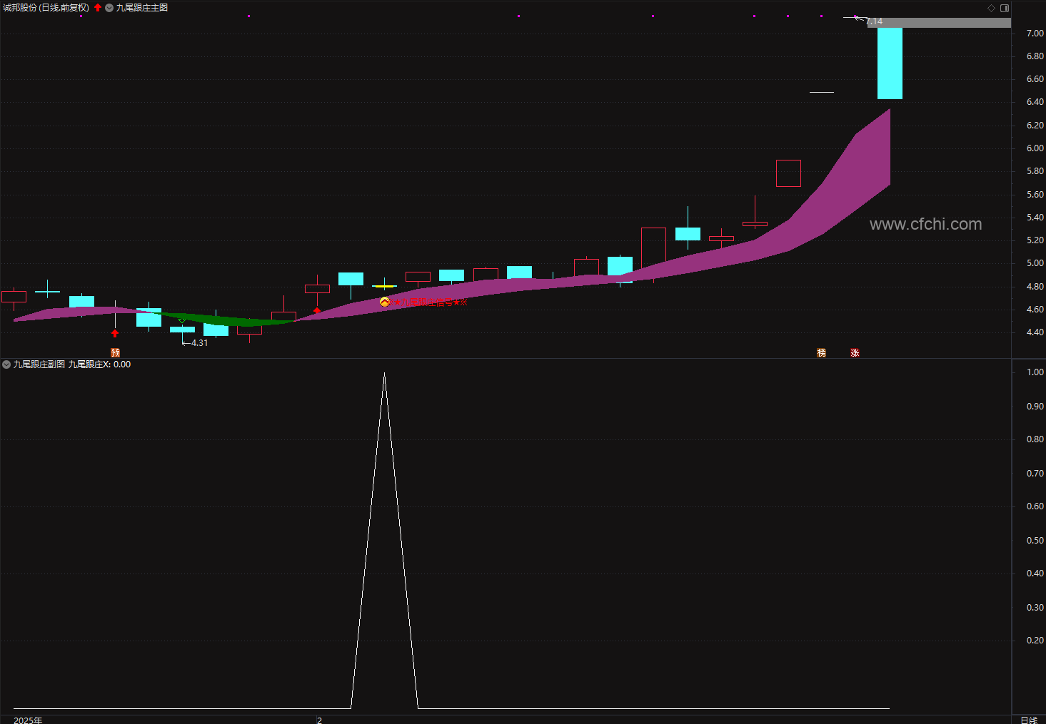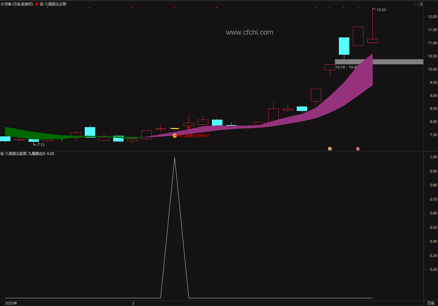 (通达信【九尾跟庄】主副图/选股指标 彩带主升庄进异动 )