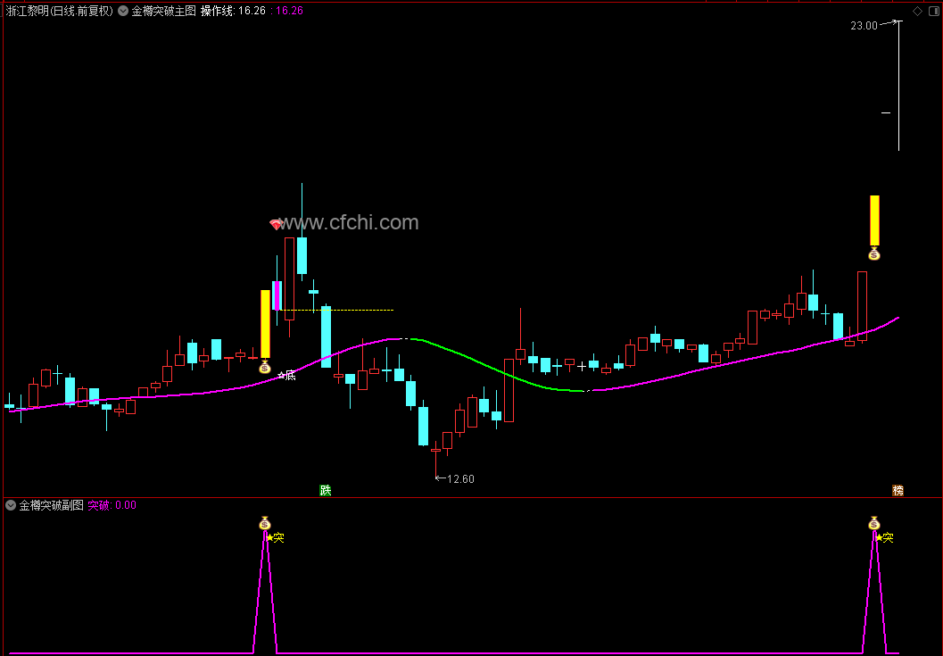 - 当股价放量突破N日最高价的1.05倍,且满足前述所有筛选条件时,出现"钱袋子"突破信号,标志底部区域的安全介入窗口。