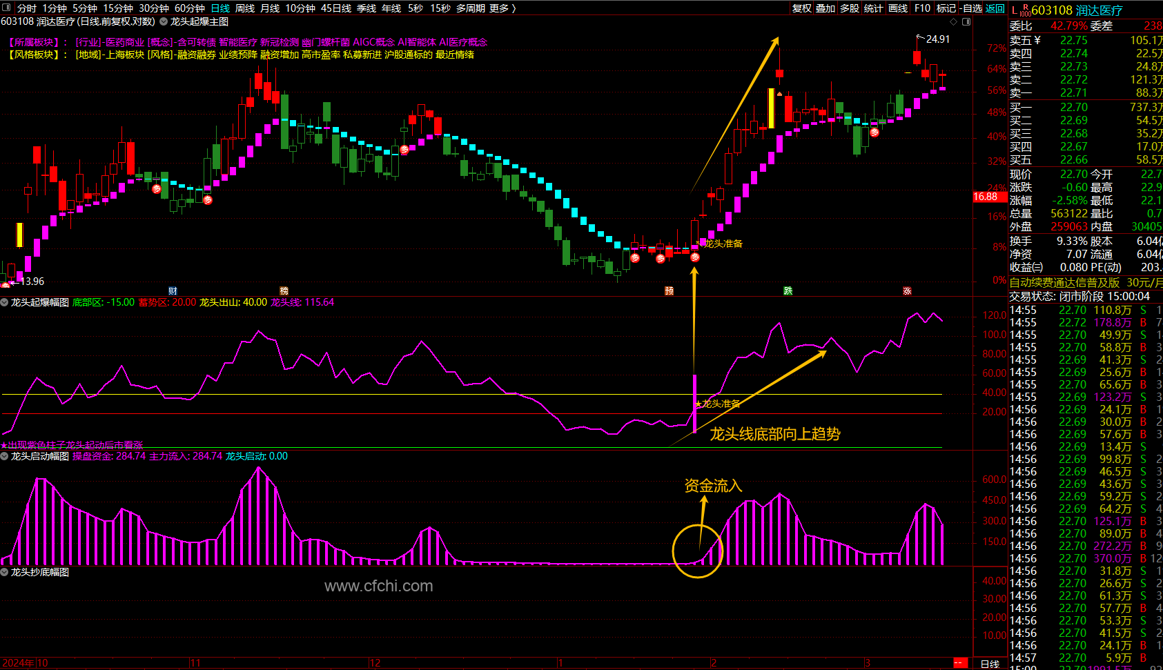 龙头启动信号,配合均线看更稳,或者配合龙头线,确保趋势底部向上才可以。成交量要配合放大,