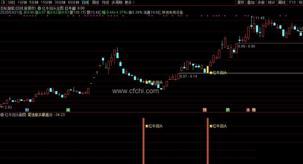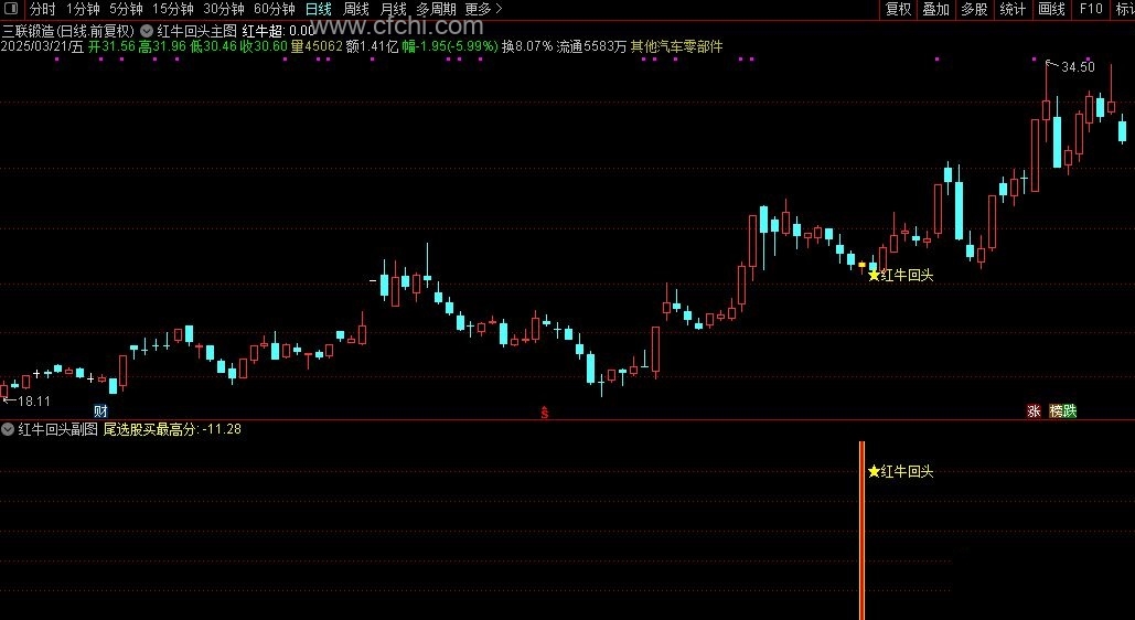 (【红牛回头】通达信红牛回头主副图选股指标,源码)