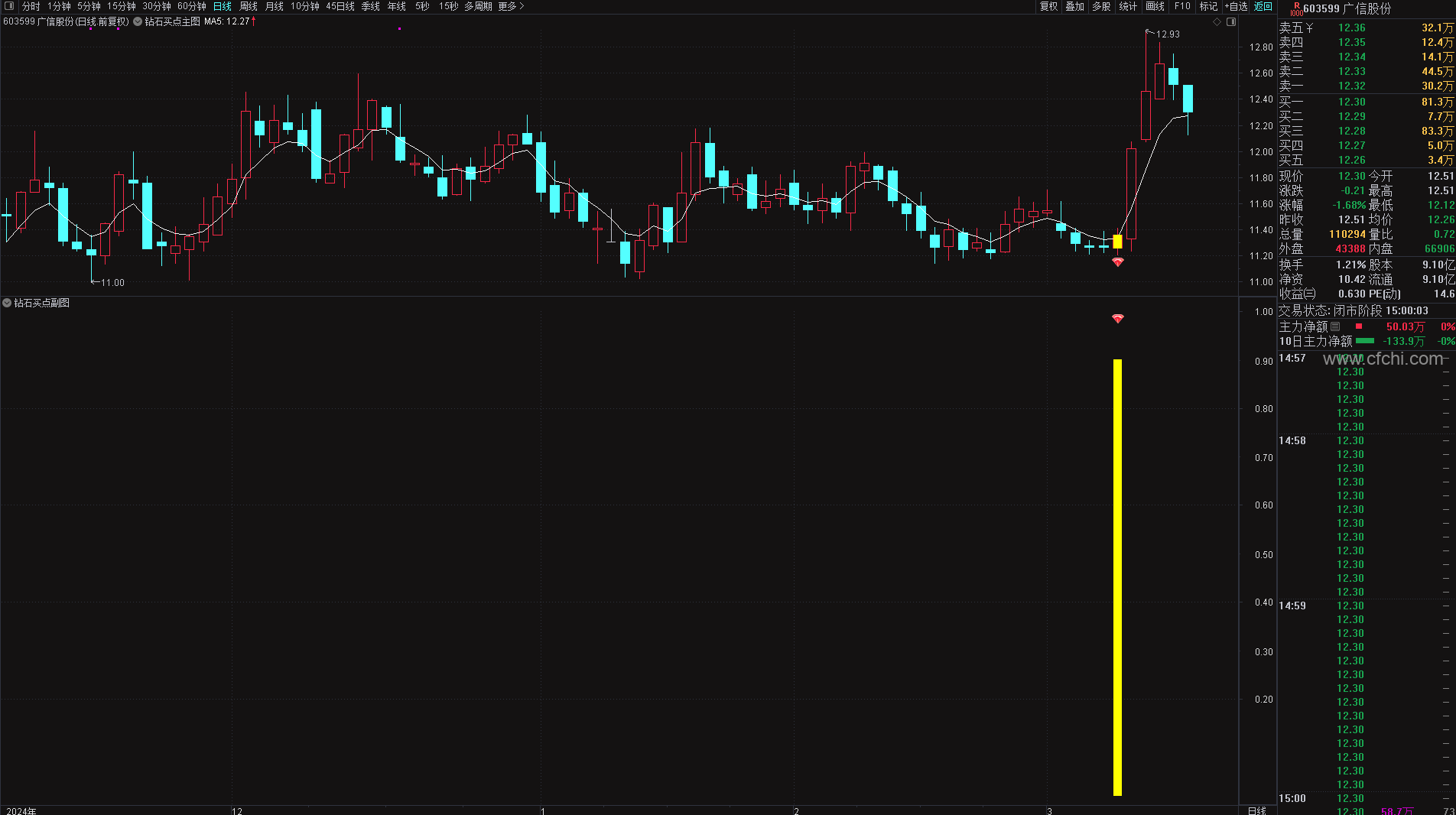 精华版:分时主力吸筹:增加了买入点提示,效果不错。手机电脑都可用。