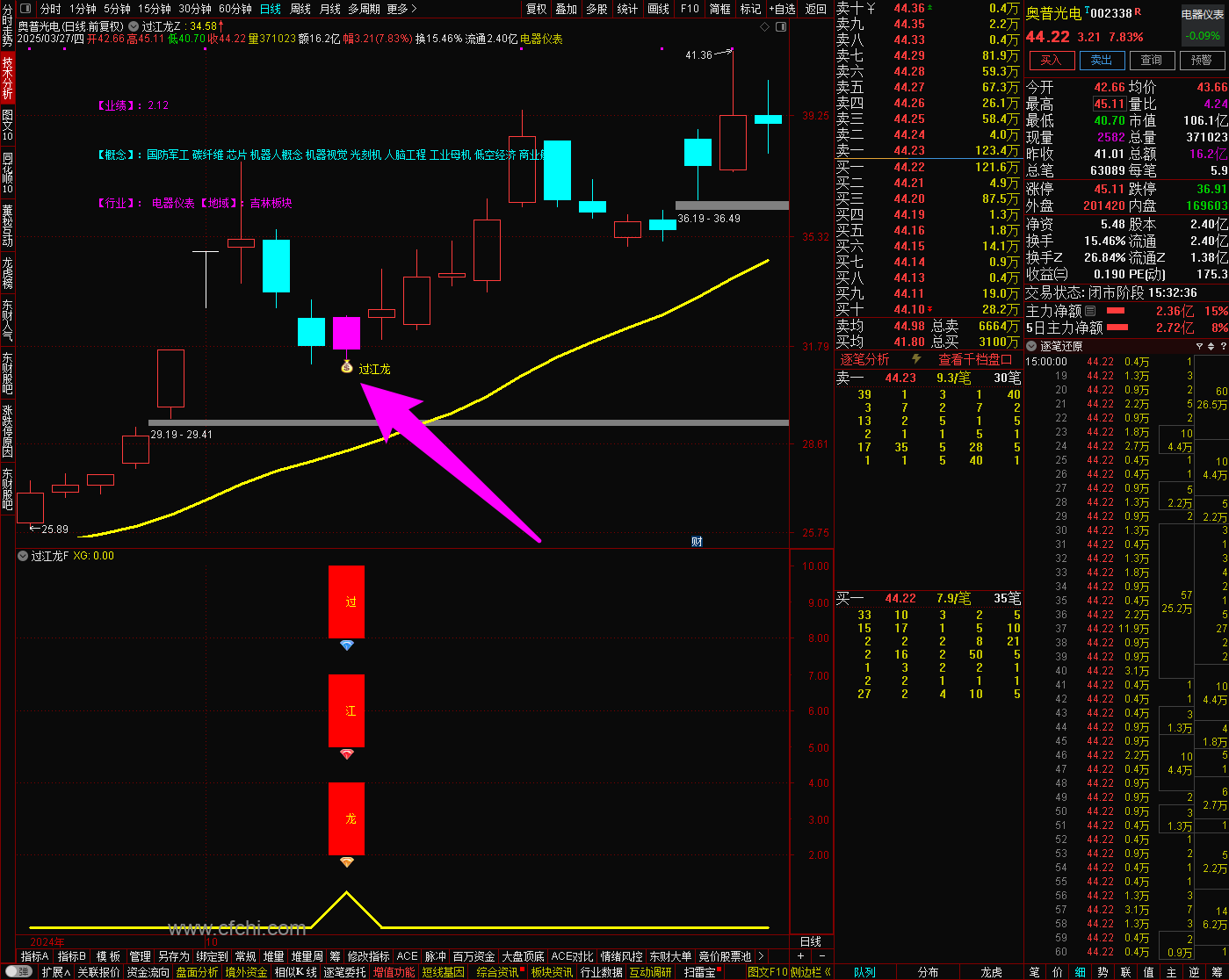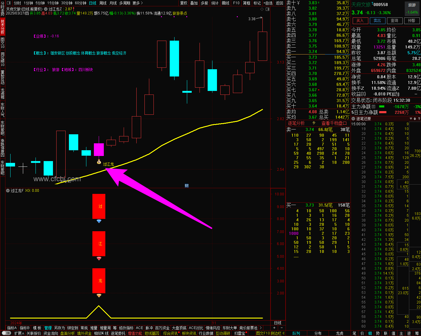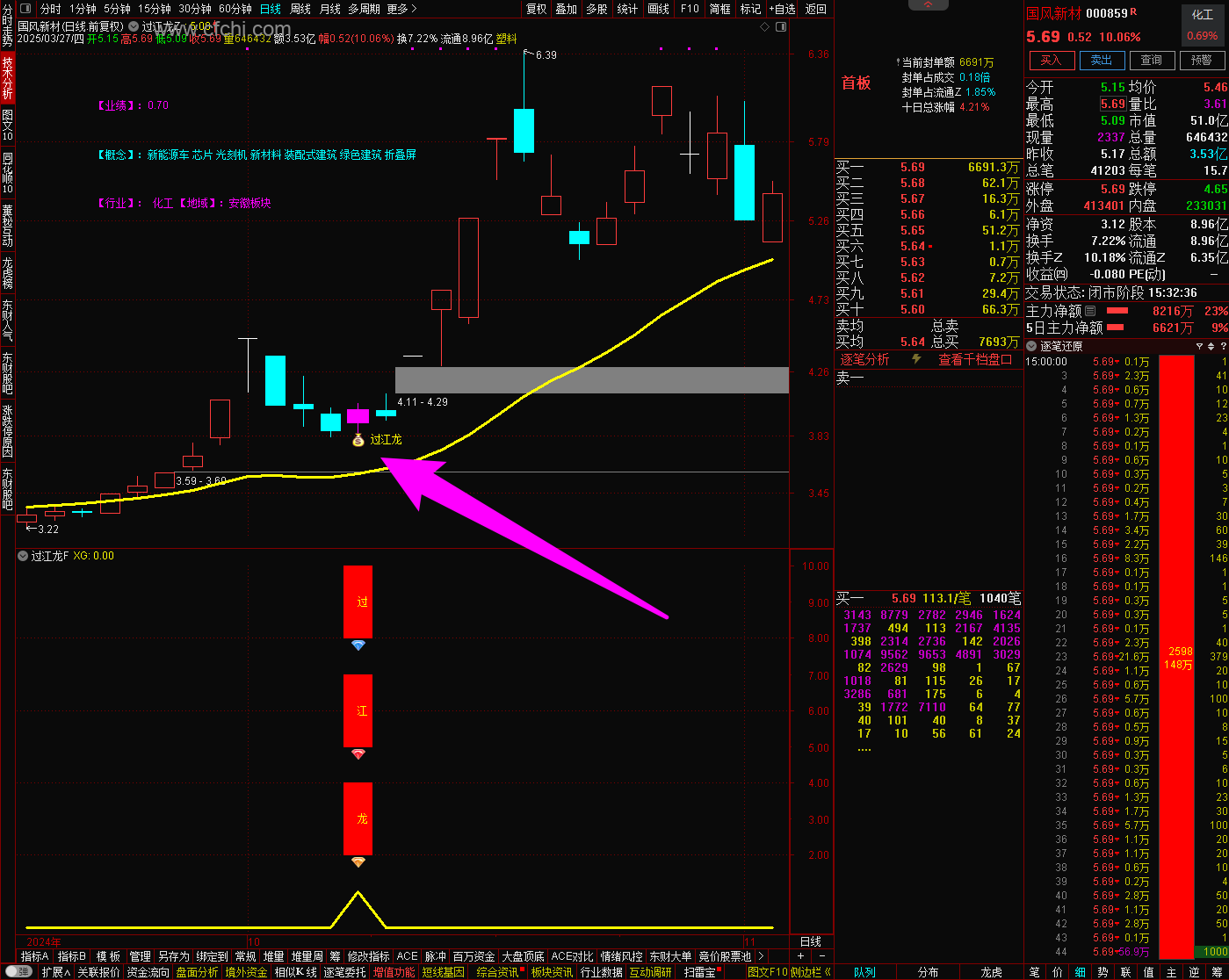 过江龙,是一款龙回头选股指标。强势股在拉上过程中经常会遇到一些坎坷,于是就出现中途调整。或深或浅,可以理解为一条江。一旦跨过这条江河,就成了过江龙,开启下一轮主升浪行情。