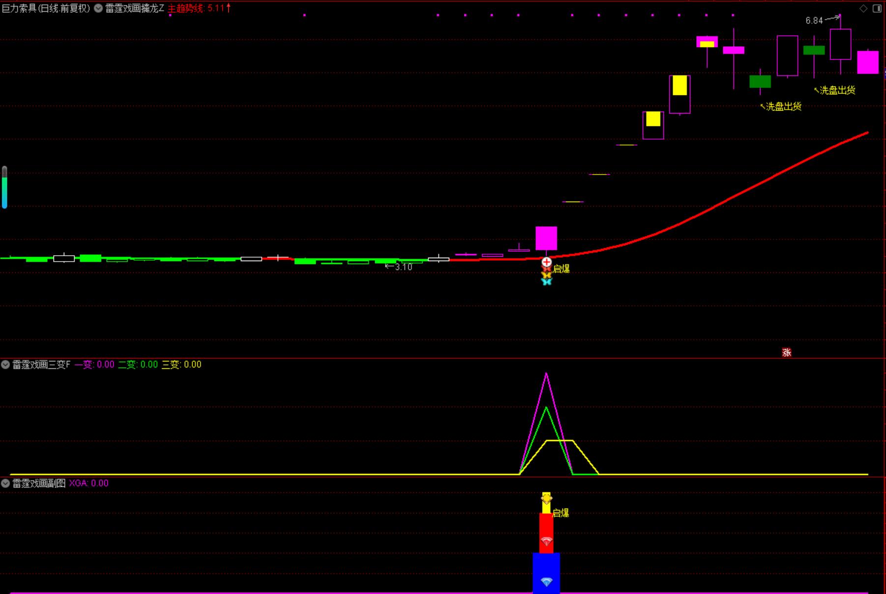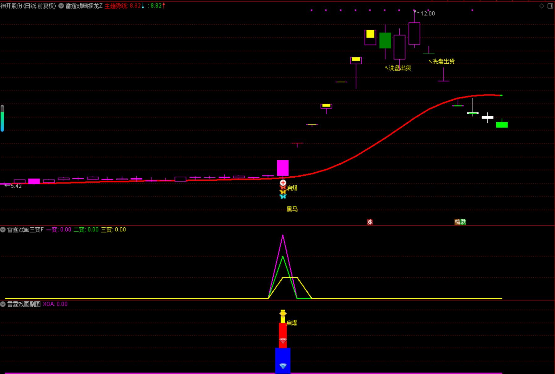 (通达信【雷霆戏画三变】指标,主图、副图、选股,三变擒龙思路,无未来函数,手机电脑通达信通用)