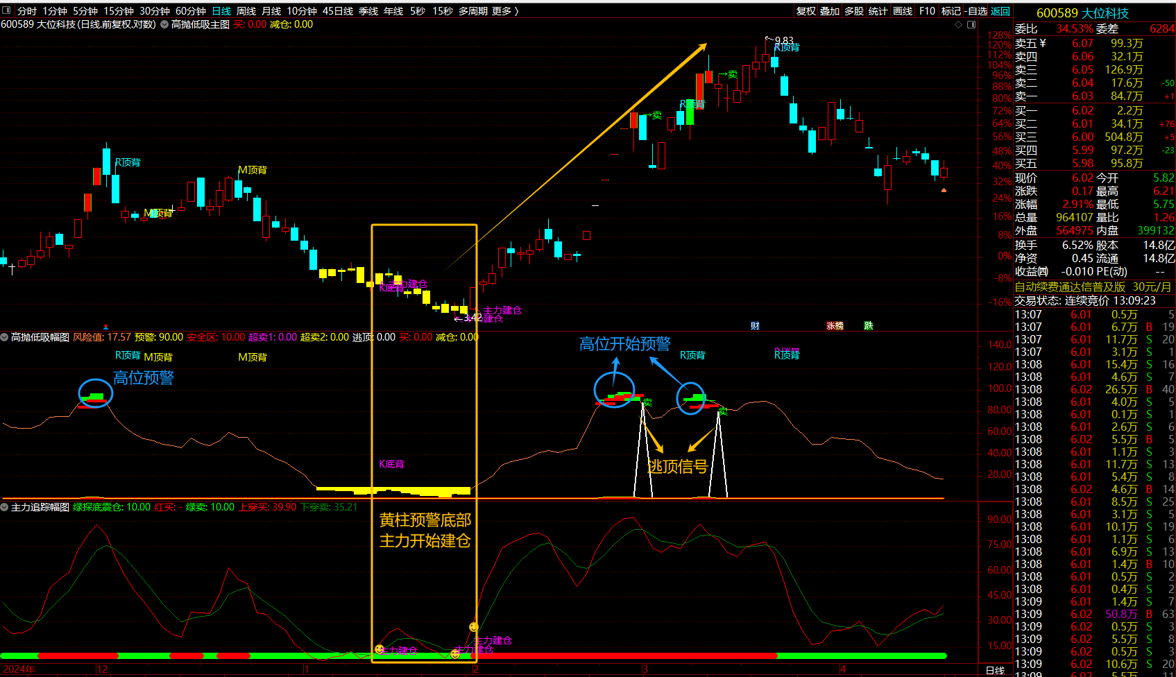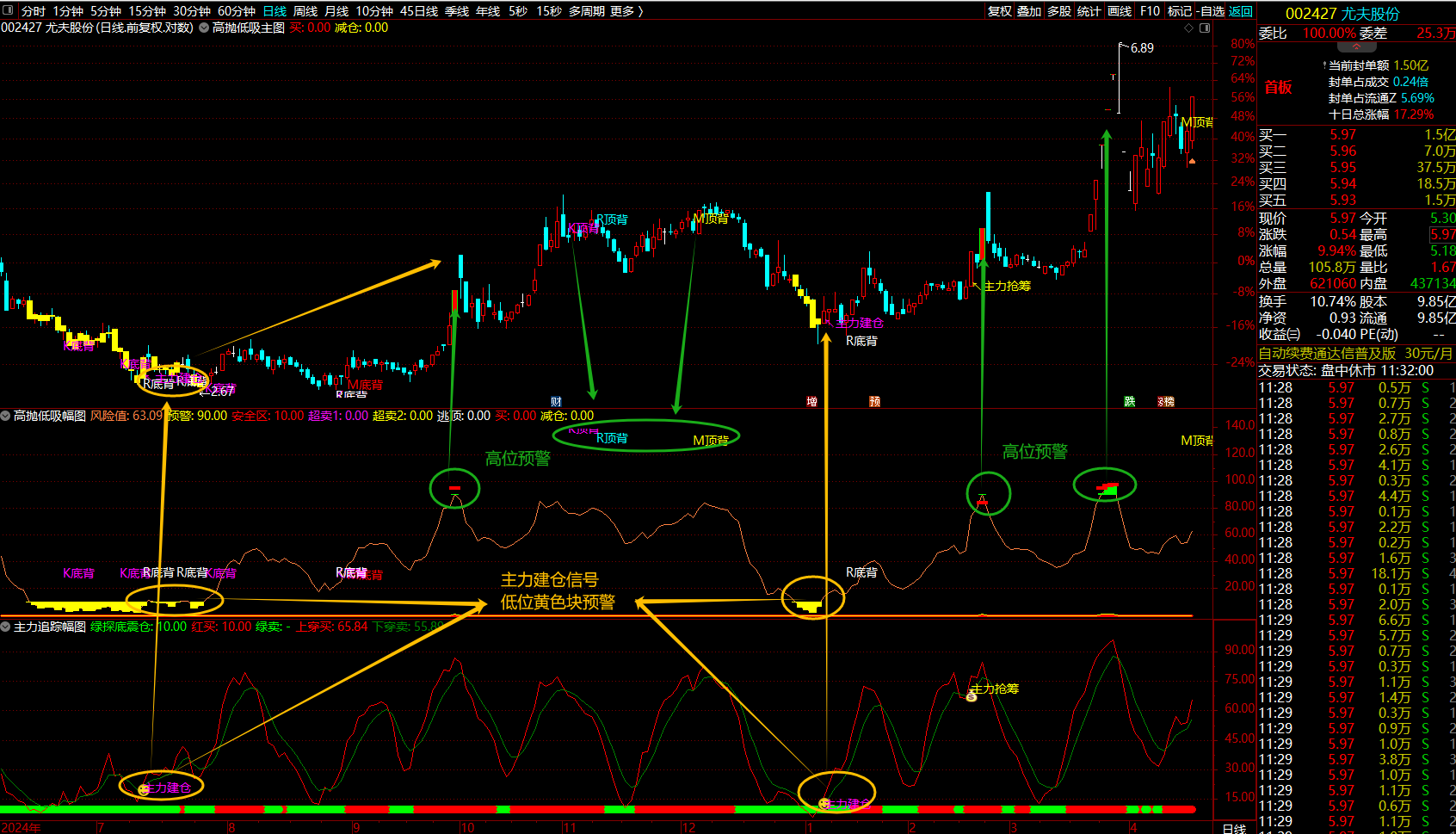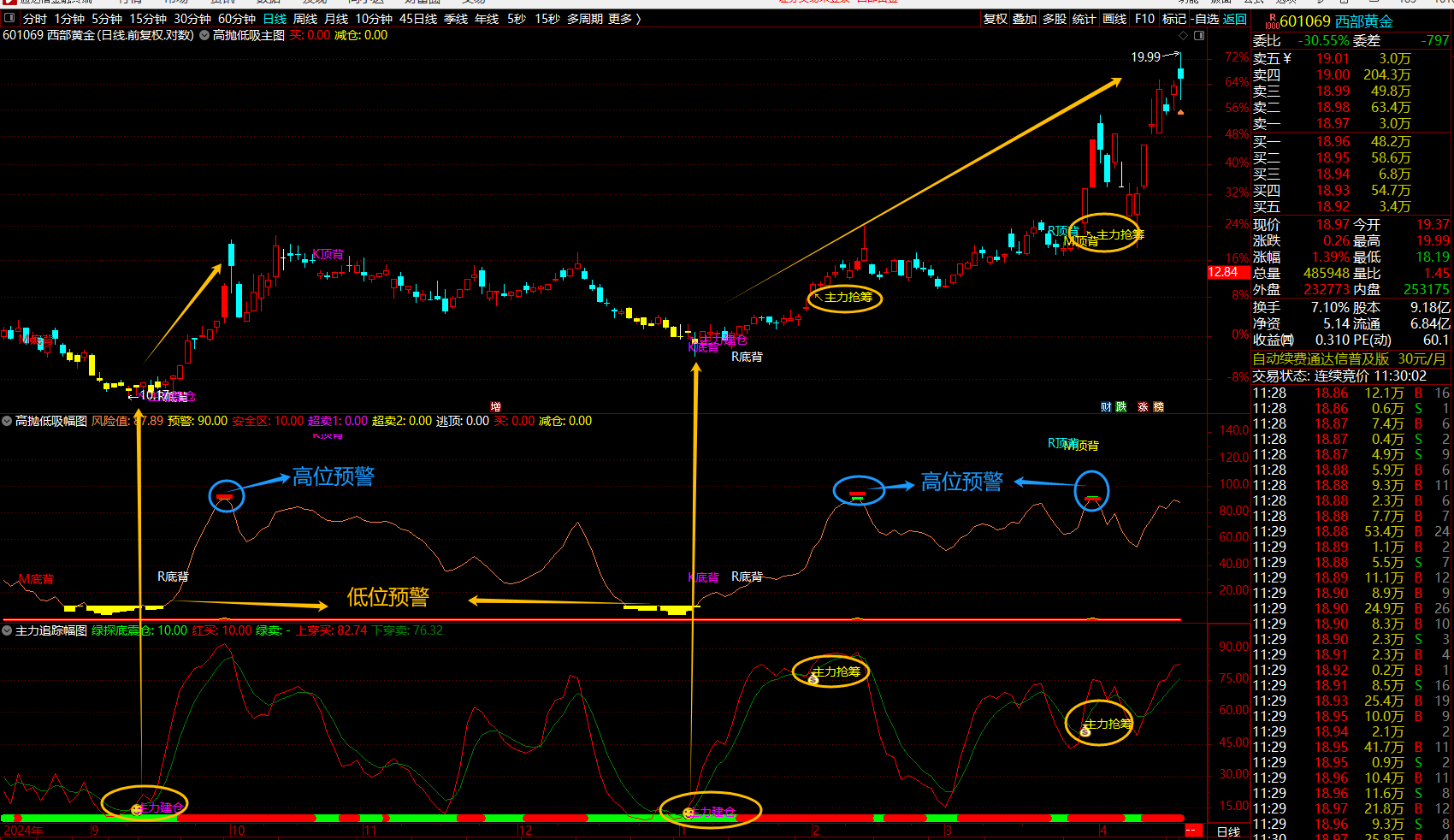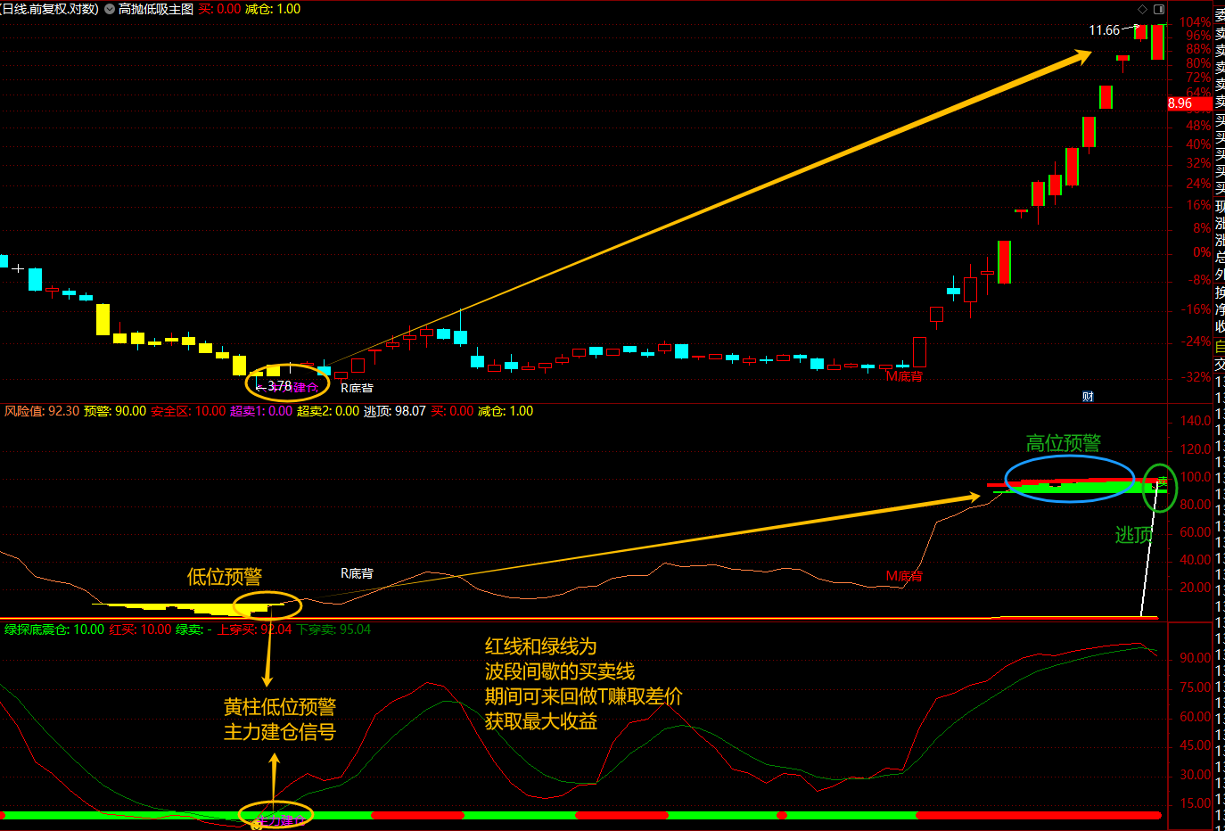 (通达信【高抛低吸+主力追踪】套装指标利用高抛低吸波段操作跟随主力操作建仓抢筹拉升/成功率比较高的方式)