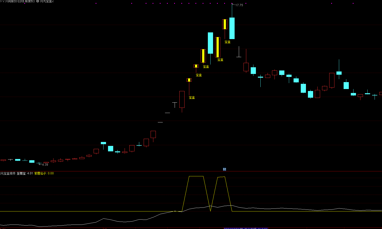 (通达信 【月光宝盒】 主图+竞价排序+选股 信号不多,个个次日都有肉,胜率高,无未来,手机电脑通用)