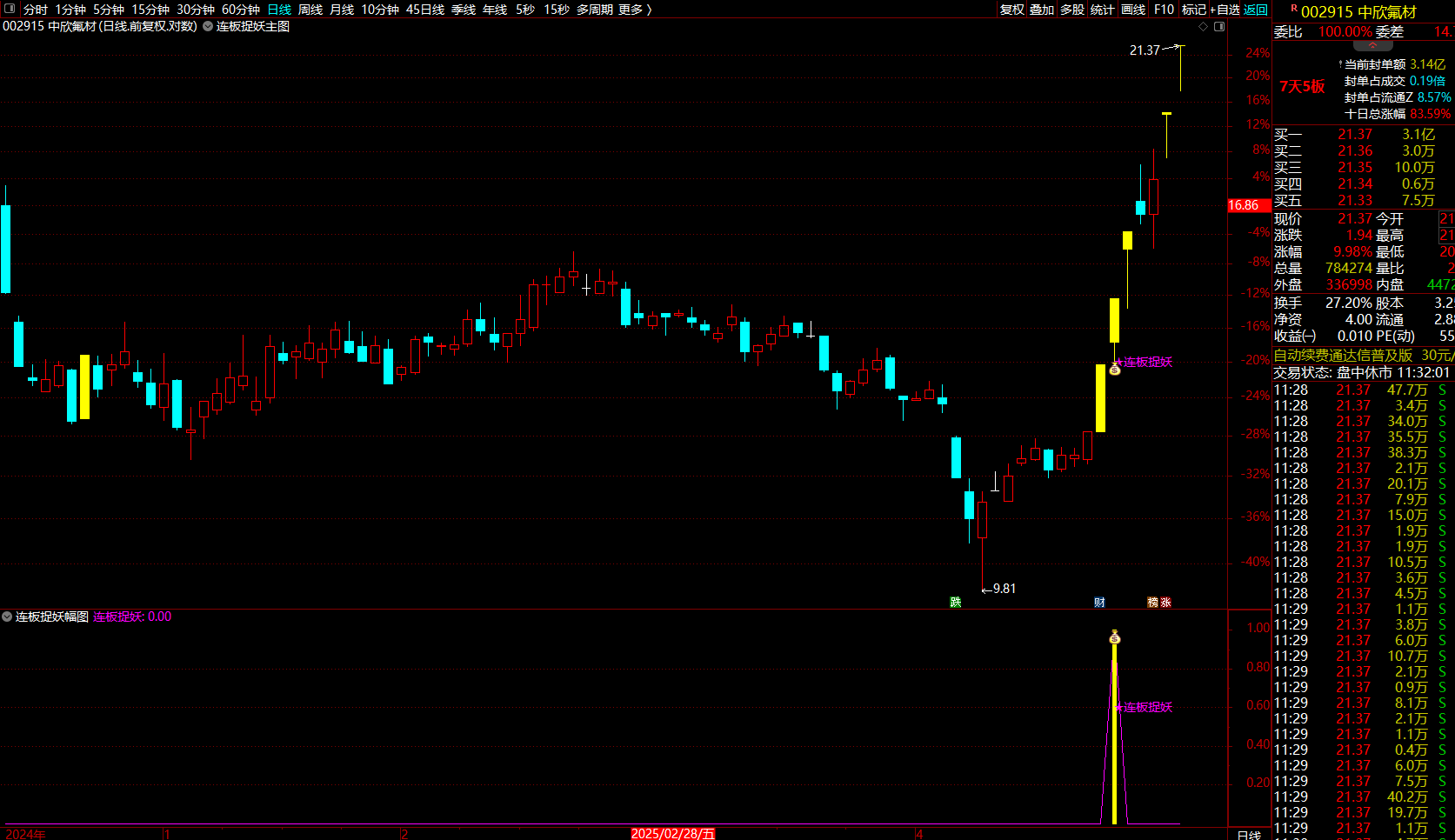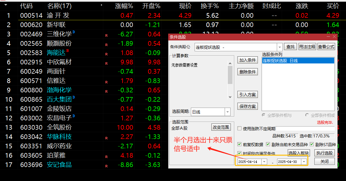 (通达信【连板捉妖】指标连板捉妖胜算高、信号适中、短线操作一进二、不含未来函数)