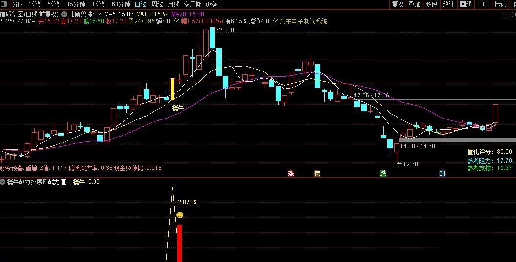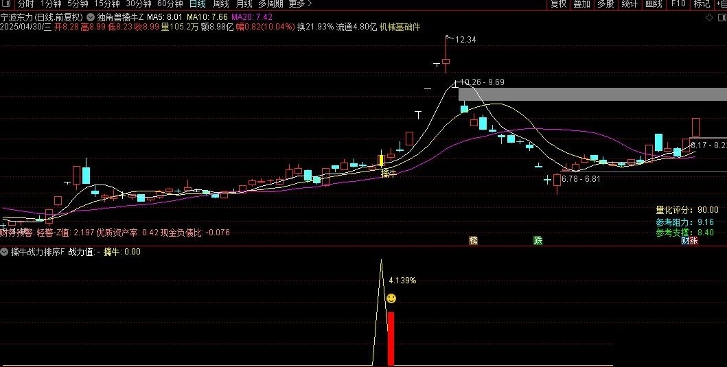 3.参数自定义:主图和选股指标的战力值阈值支持个性化调整(建议范围80-85),数值调低将相应增加信号数量,请根据自身风险偏好设置。