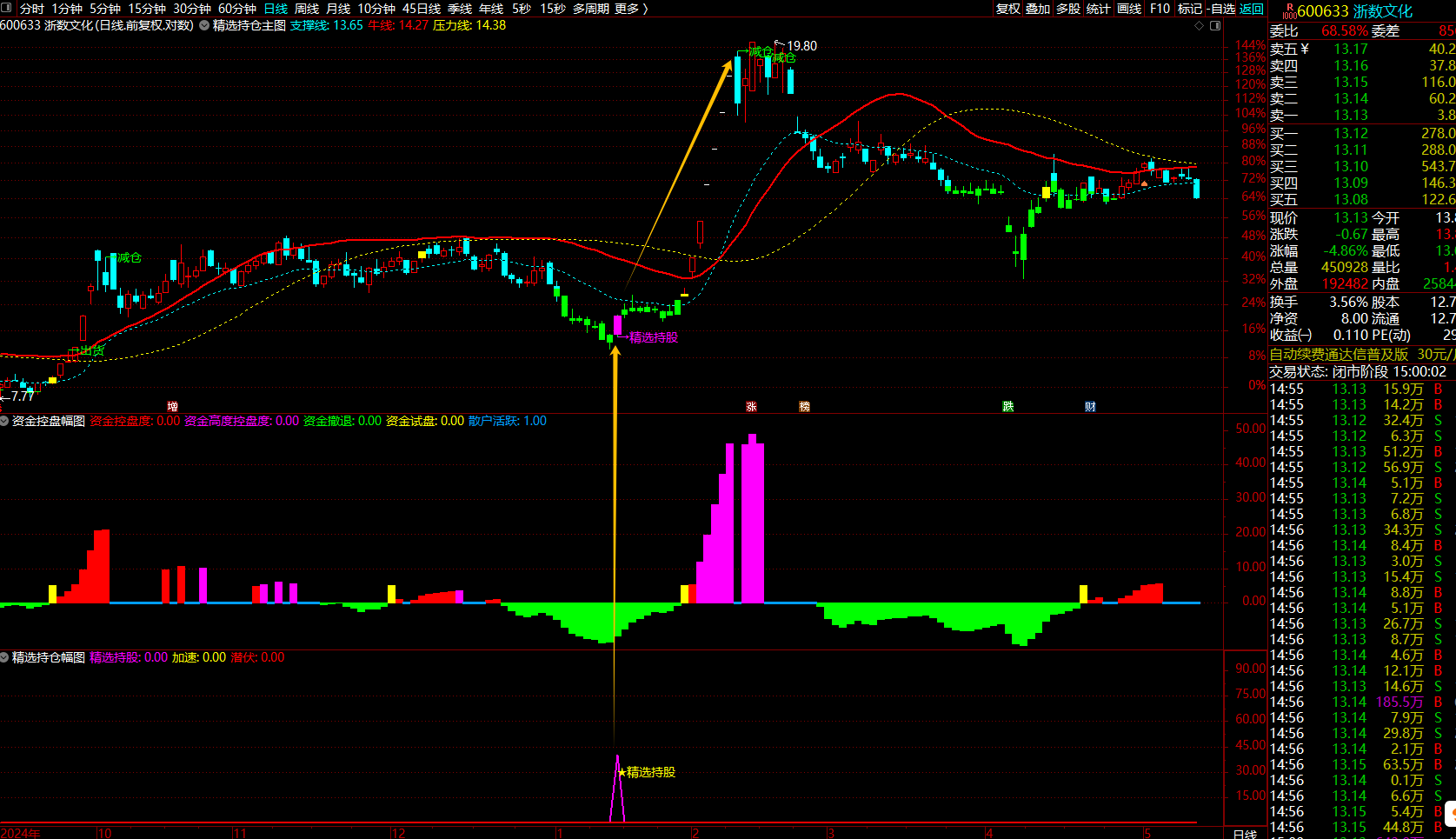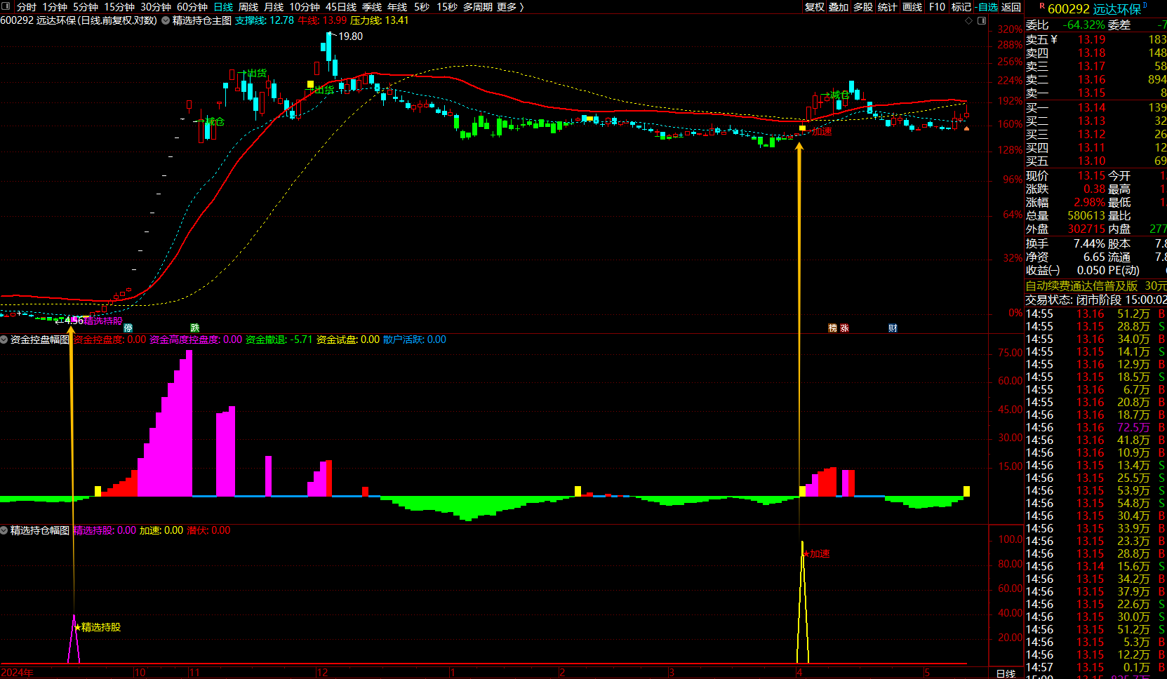 (通达信【精选持股+资金控盘】指标1主图2幅图3选股精选出长期持有的股适合短中长线操作)