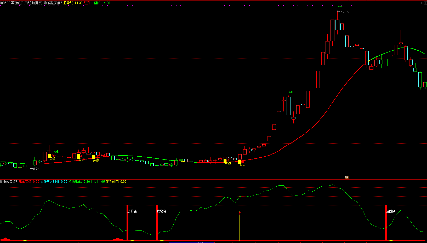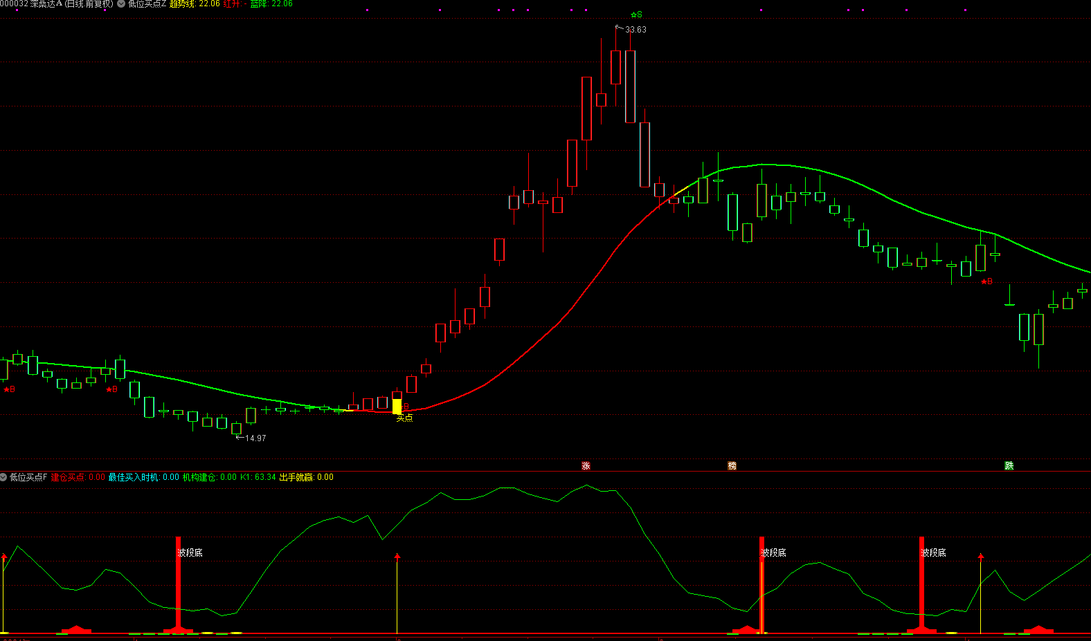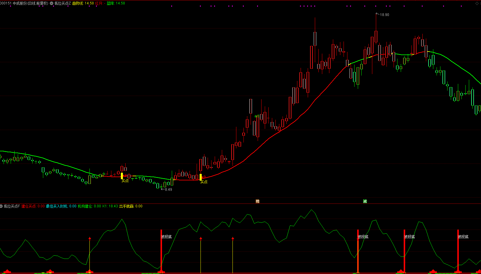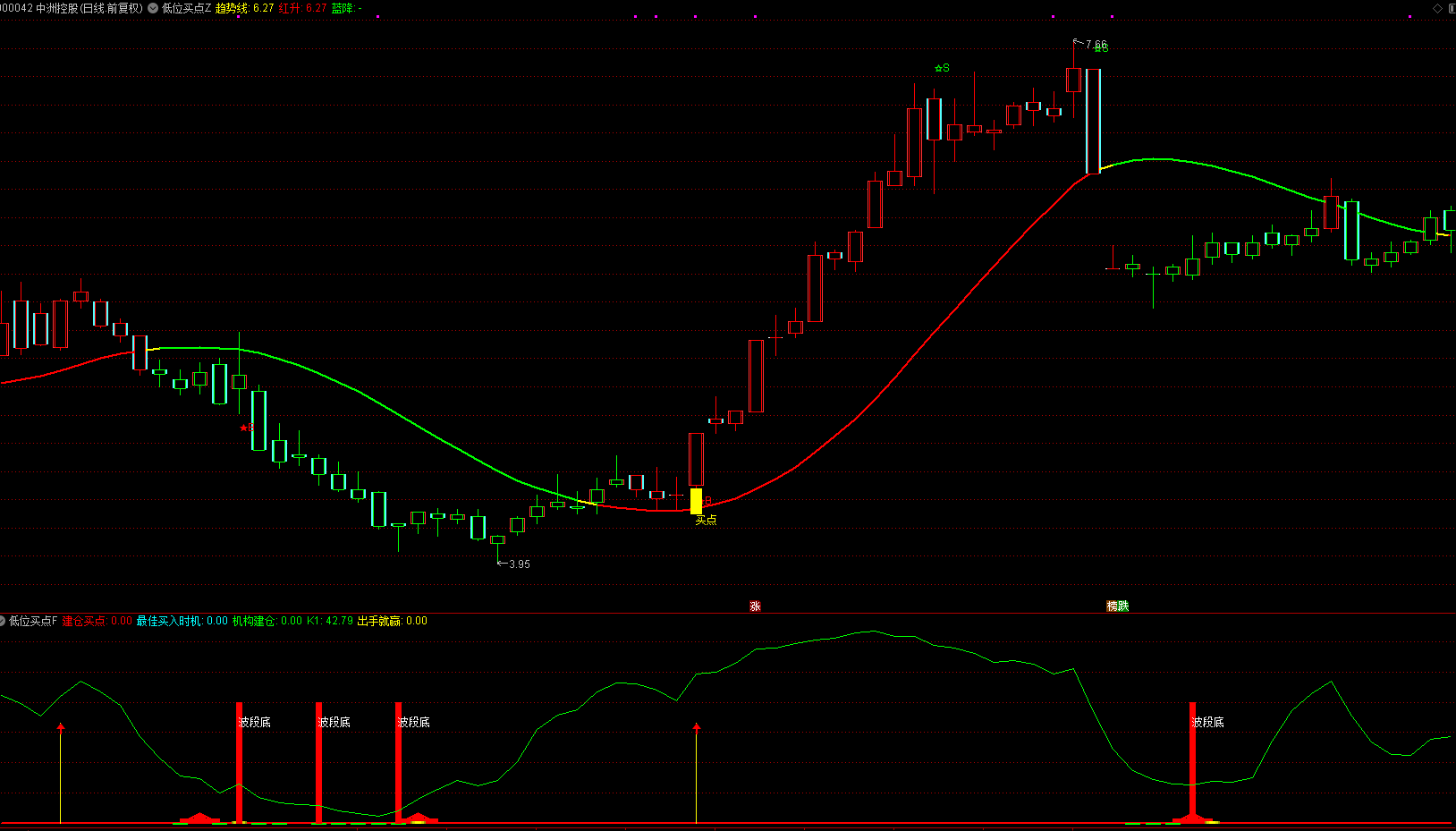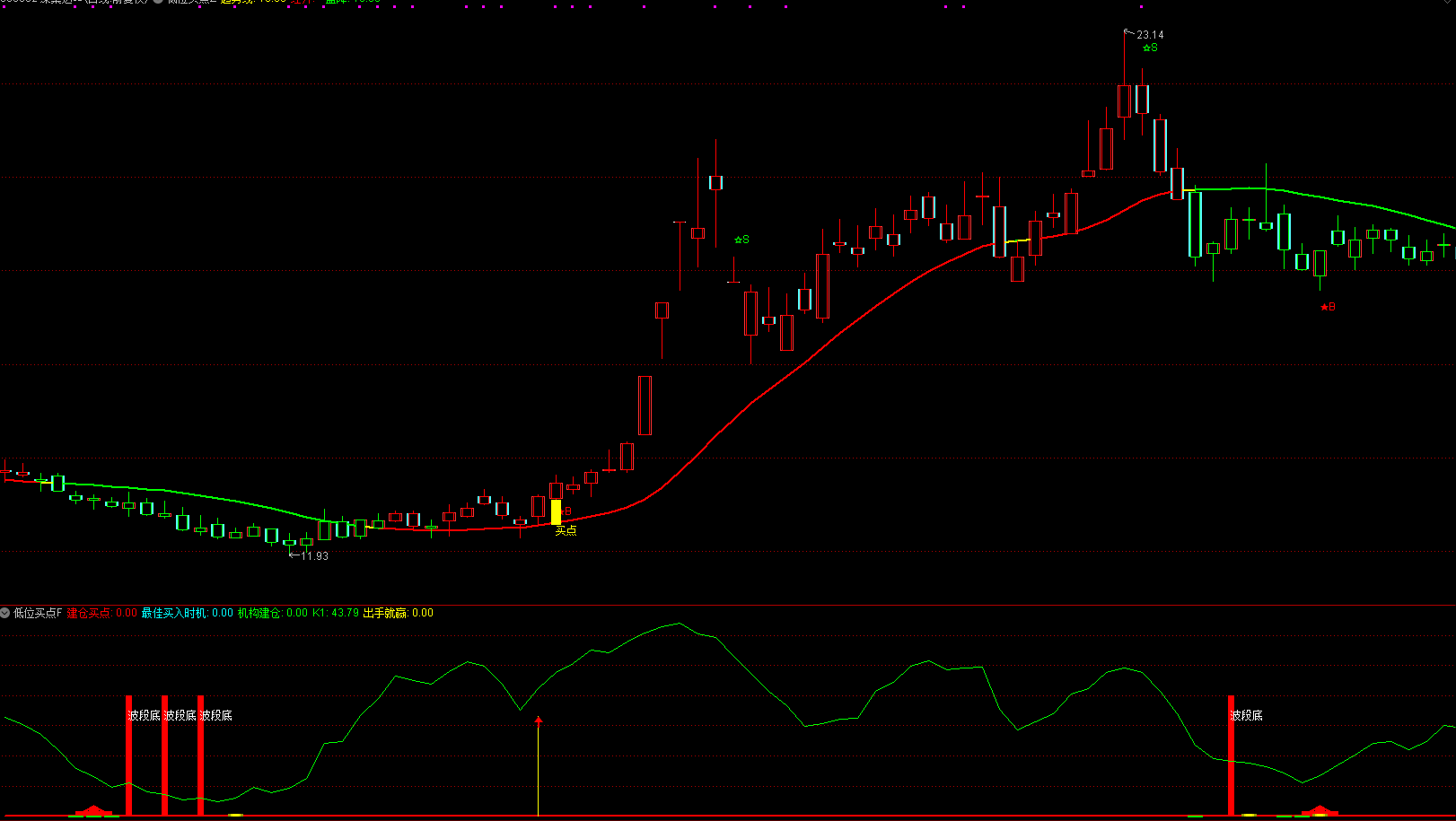 (通达信 【波段低位买点】 主副图选股 在波段底部进行有效的抄底)