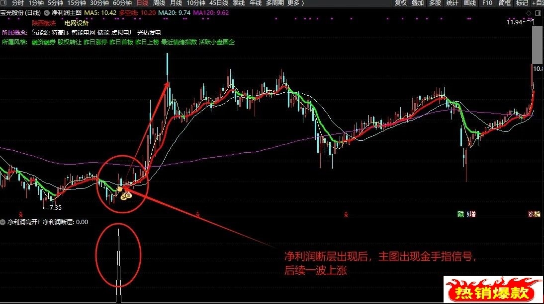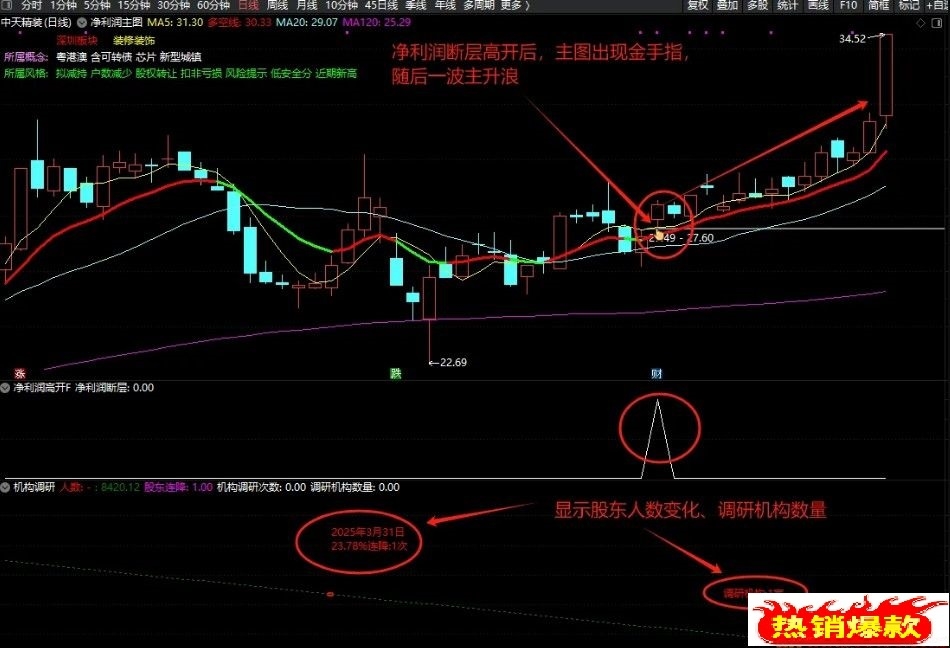 (通达信【净利润高开】主副图选股指标,机构调研及股东人数变化!源码)