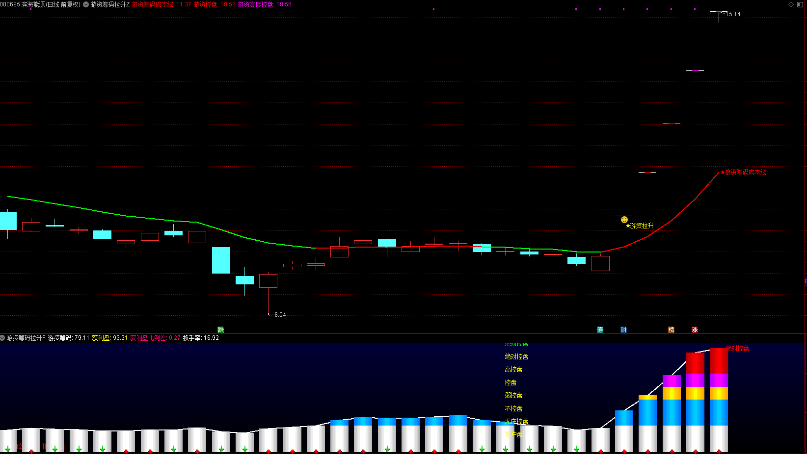 主副图共振:当主图出现控盘柱+副图筹码强度>50%时有效性更高