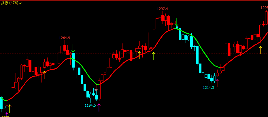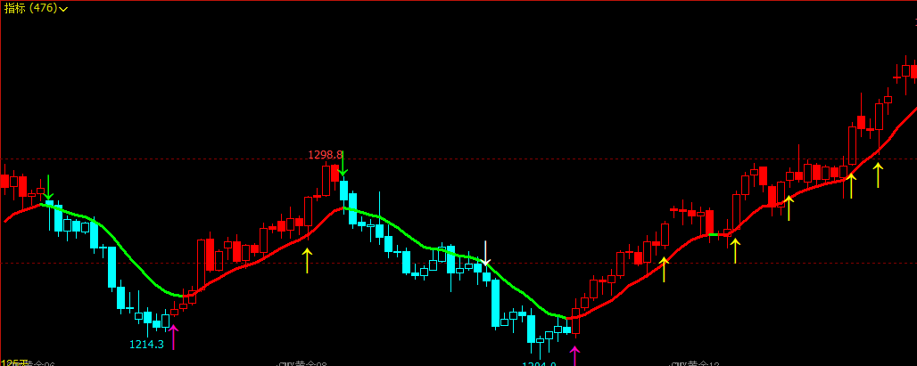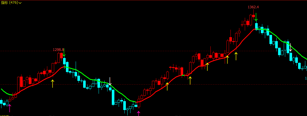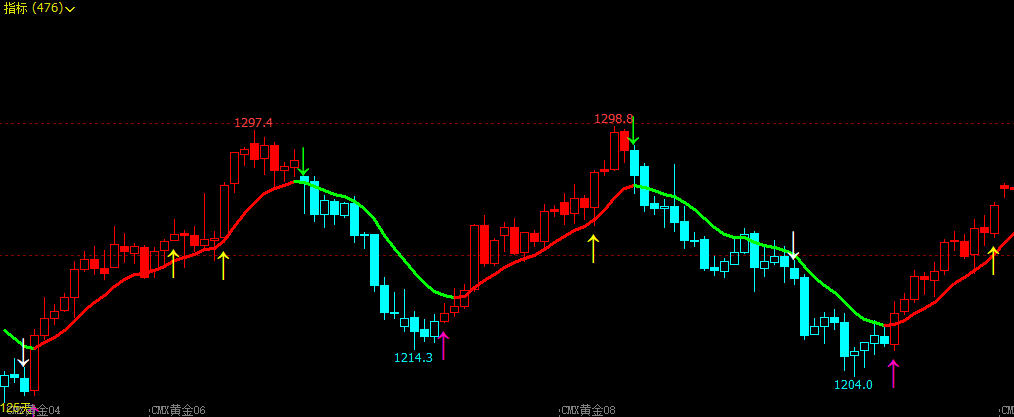 (文华财经指标公式 黄紫色箭头主图 无加密 期货指标公式 公式源码文件)